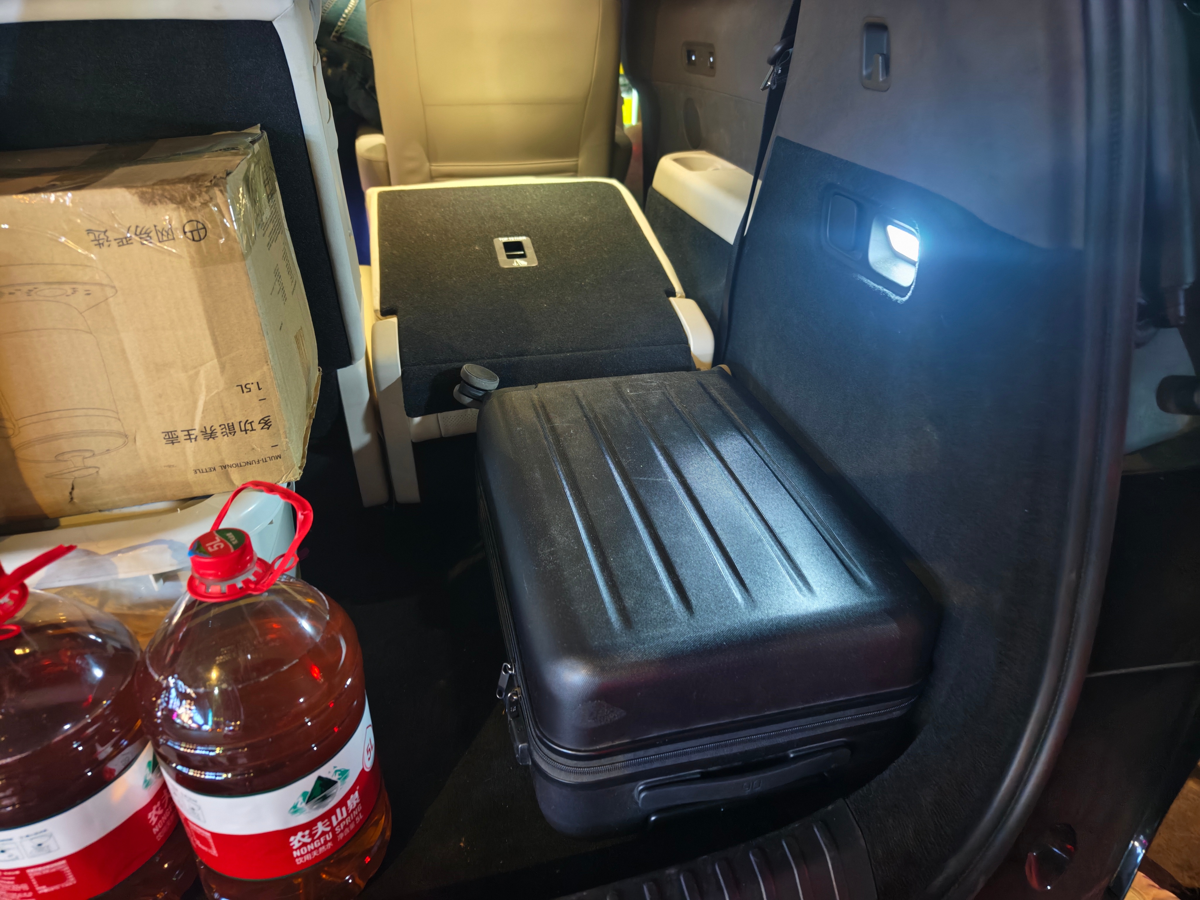 理想MEGA第三排放倒以后如果将20寸行李箱放倒此时就能换来一个纯平的后备箱和三排的空间这体验极好 (òωó)👍