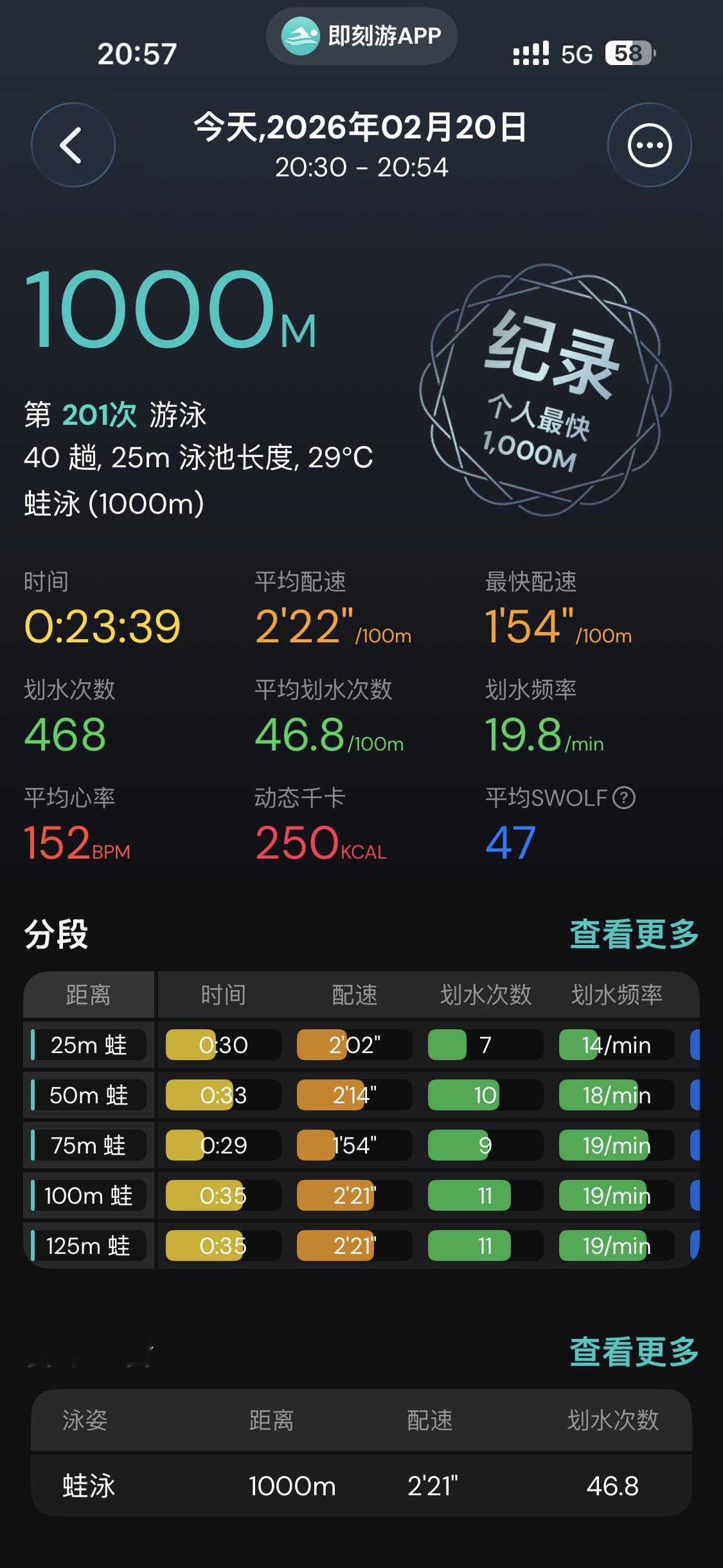 开年创新纪录,好兆头我们广东人讲究这个(比上次快了1秒)左右泳道都是女泳友如有神助,充满了力量