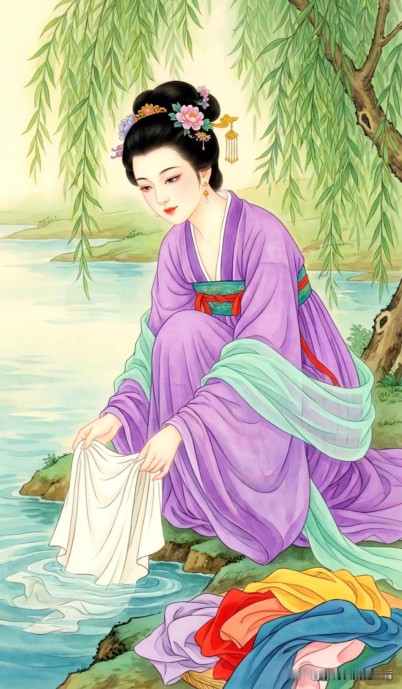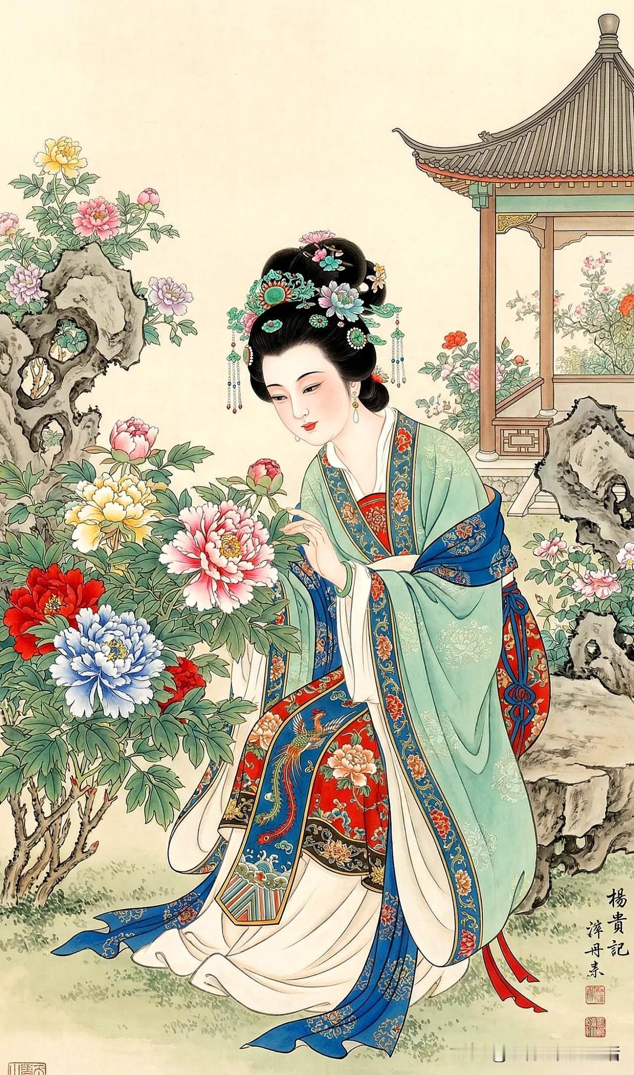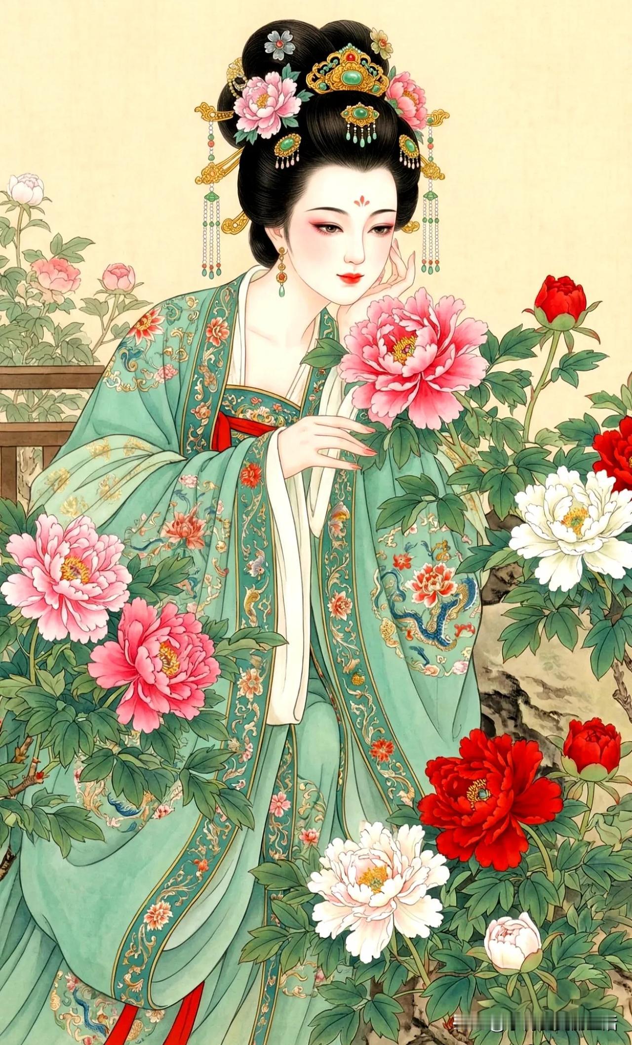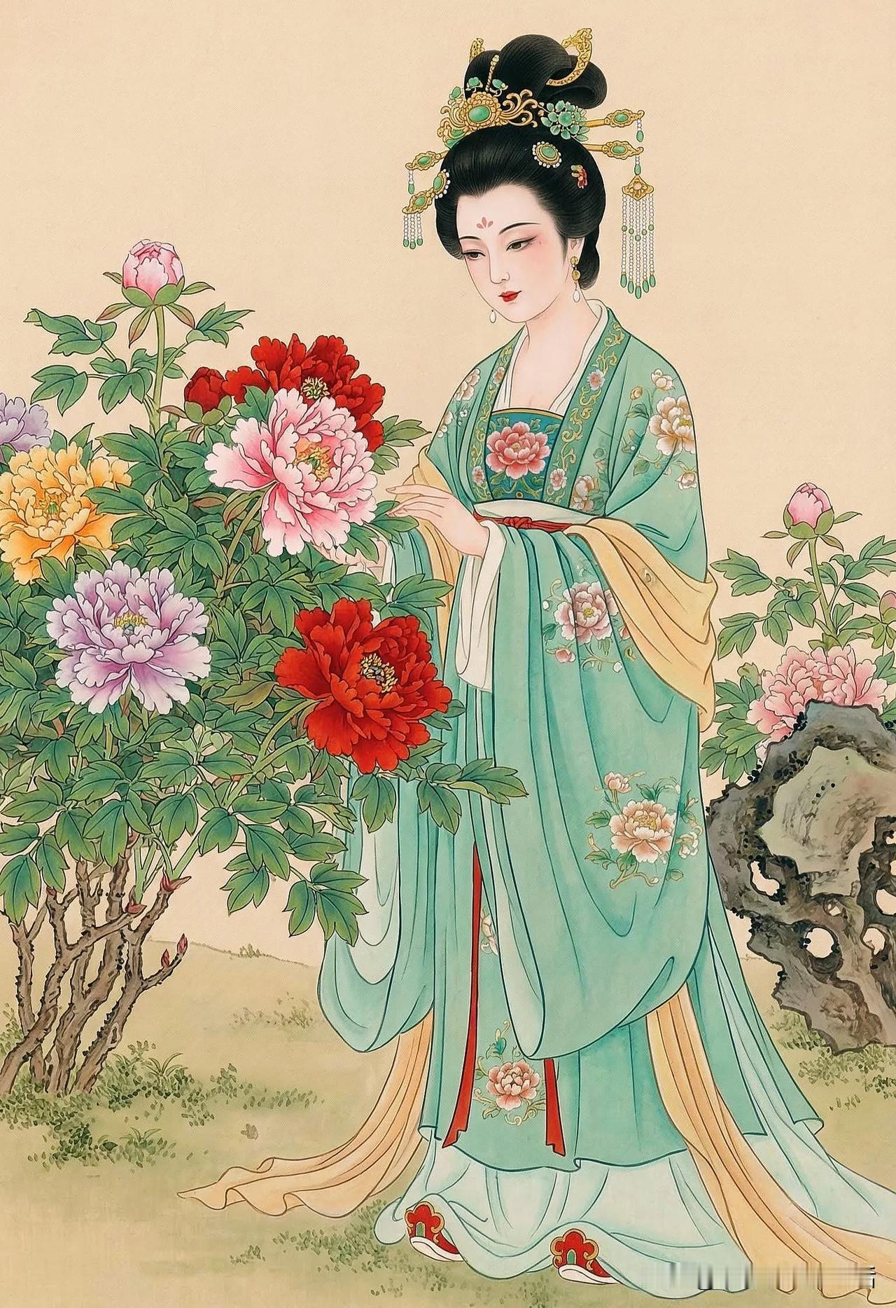 穿越千年的古典美人,手持团扇,静看桃花盛开。