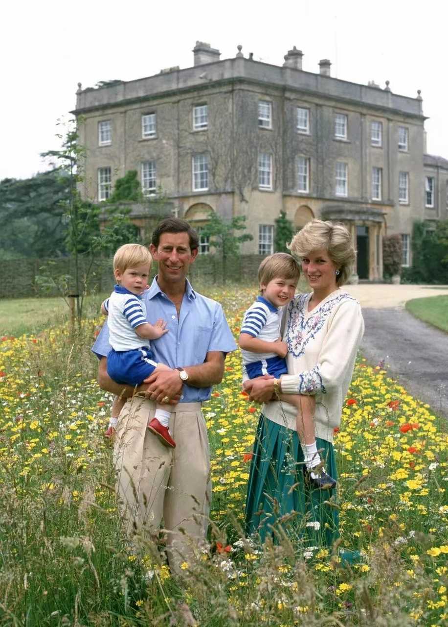 【来自投稿】1986年,威尔士亲王查尔斯和王妃戴安娜在海格洛夫庄园,和他们的孩子威廉、哈里的合影