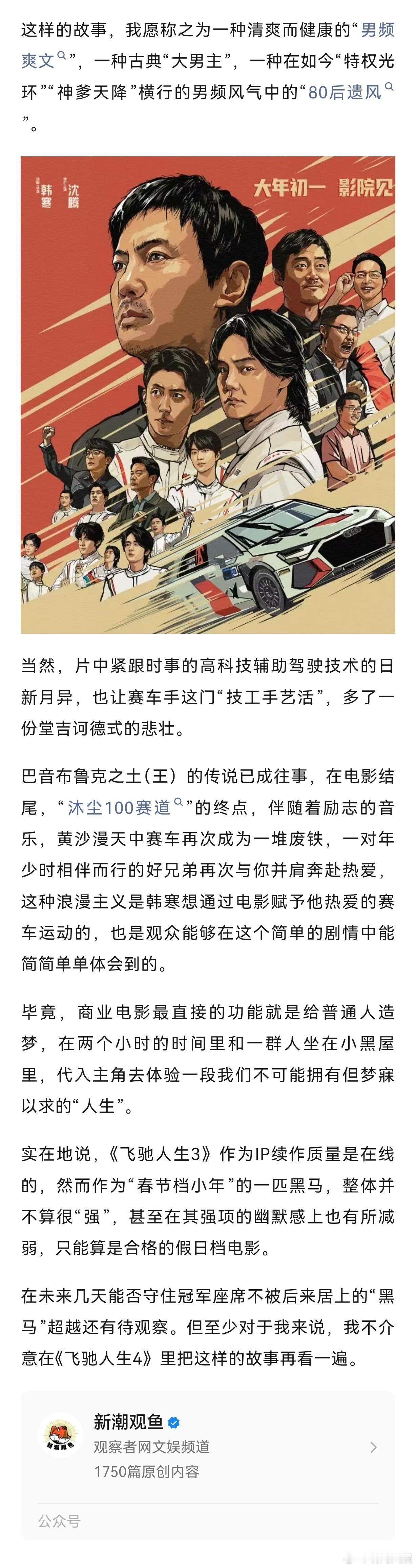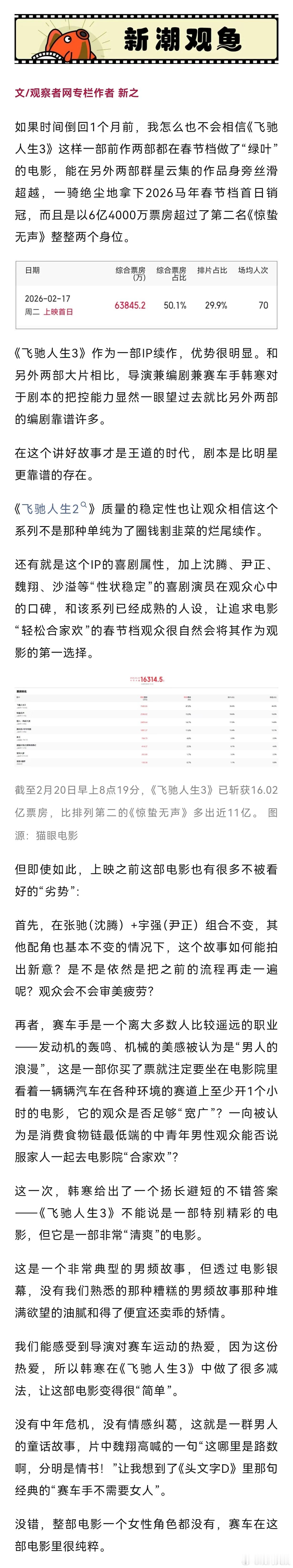 【票房“遥遥领先”,飞驰人生3哪里做对了?】新之:如果时间倒回1个月前,我怎么也