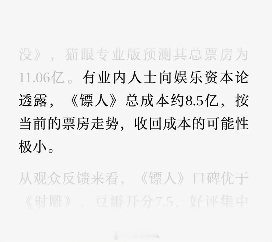 镖人制作成本7亿,总成本8.5亿?还能回本吗?镖人总成本