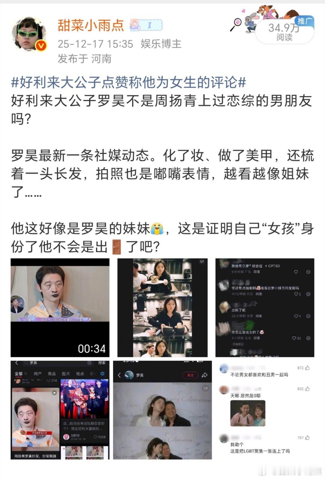 好利来大公子我都恍惚了,总觉得这个词条我见过,原来都讨论过一次了之前好利来大公子罗昊点赞称他为女生的评论,大家都在说他是不是出🚪了…怎么今天恋综又上热搜了?