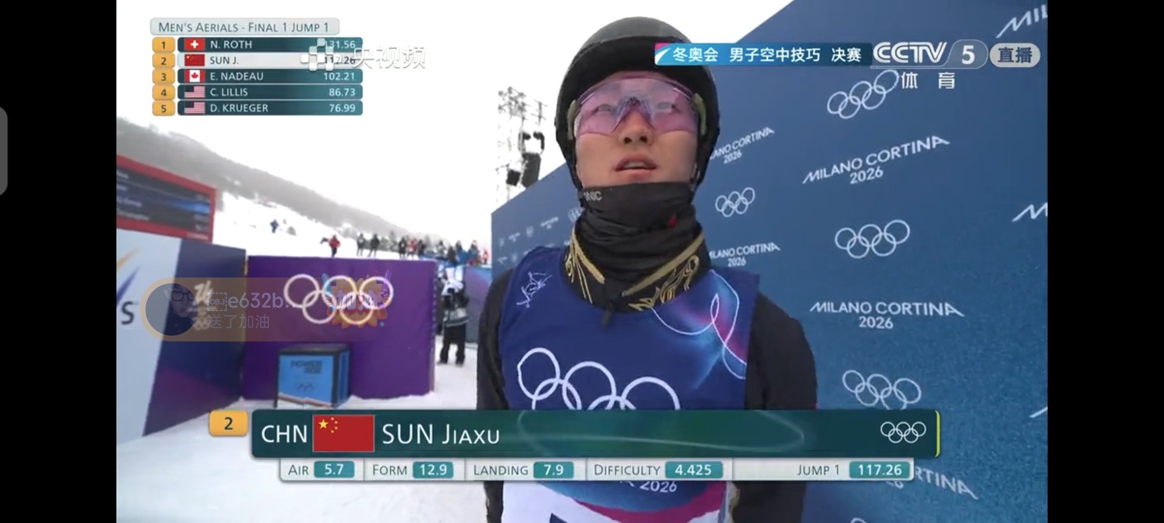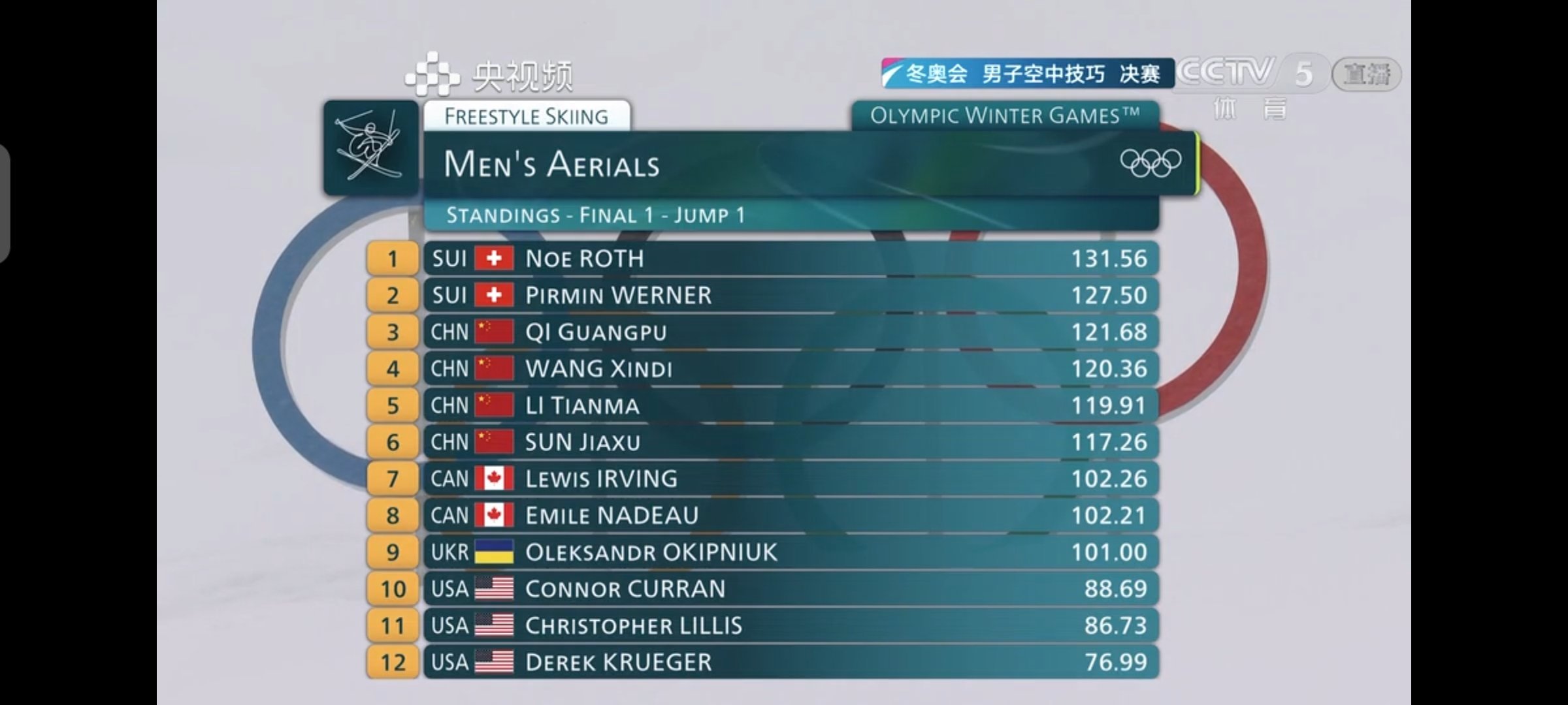 目前中国男队四位选手决赛第一轮跳完齐广璞,王心迪,李天马,孙佳旭分列第三到第六位