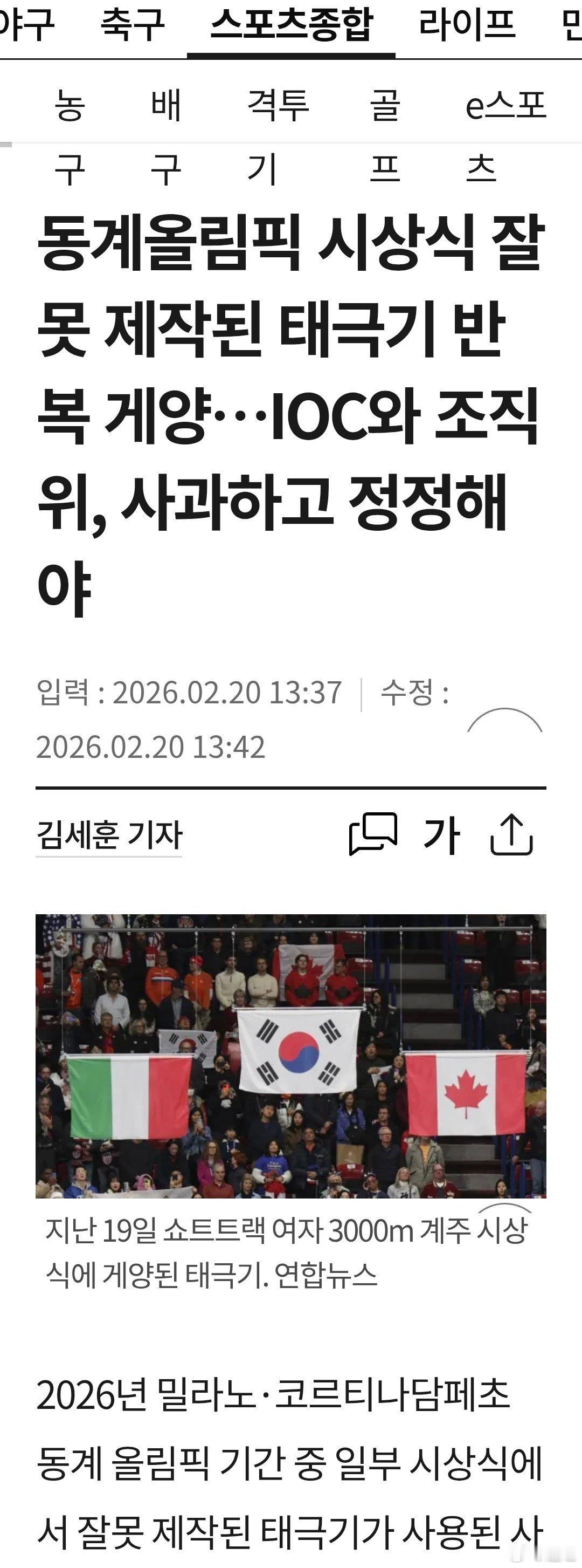 韩媒暴怒冬奥金牌升的国旗错了韩国可汗体育网站报道说,国际奥委会在米兰冬奥会上
