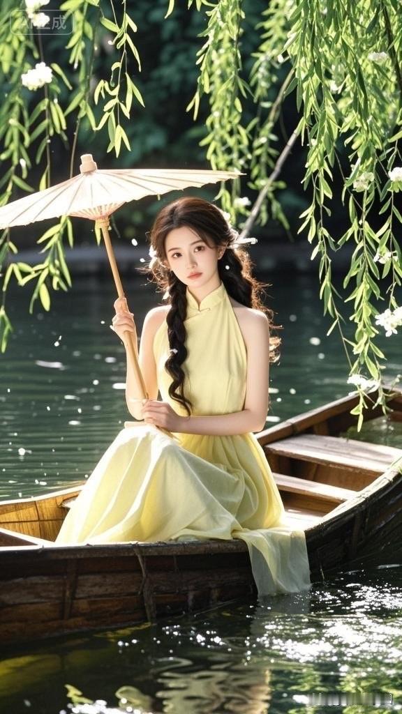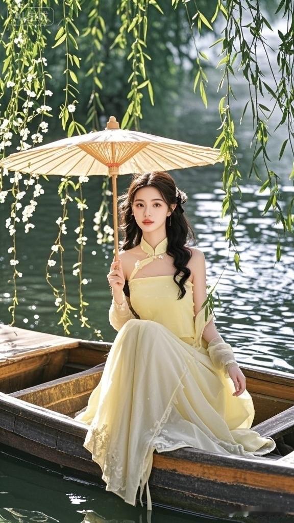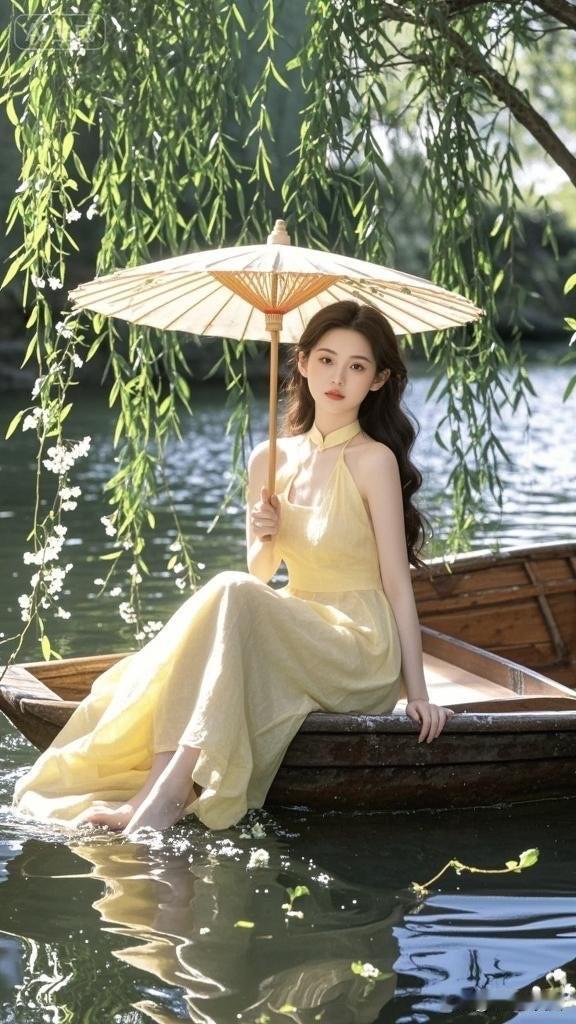 温柔优雅的少女,梦幻般的微笑,宛如画中的仙子。