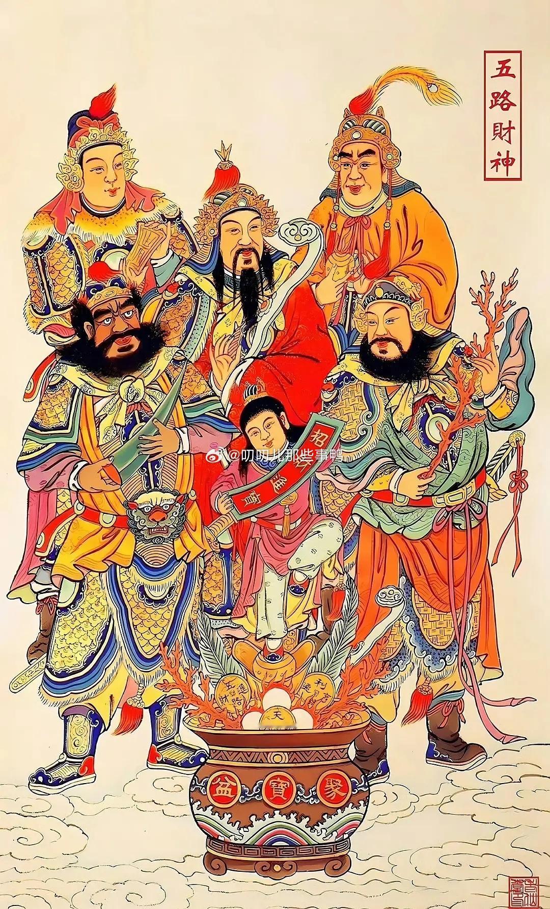 大年初五迎财神 天门开、地门开,五路财神进门来,一赐福、二赐财,赐来金银抱满怀,
