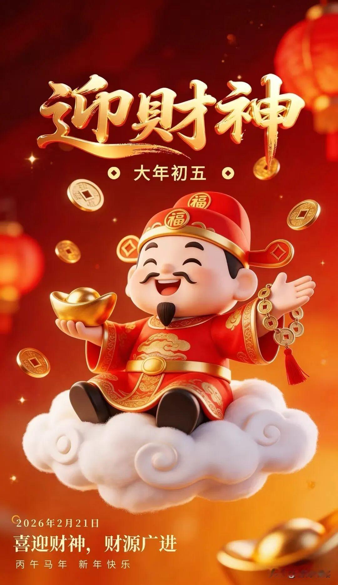 大年初五给您拜个年,愿所有的美好都如期而至!好运连连,财源广进,马年大吉,万事胜意