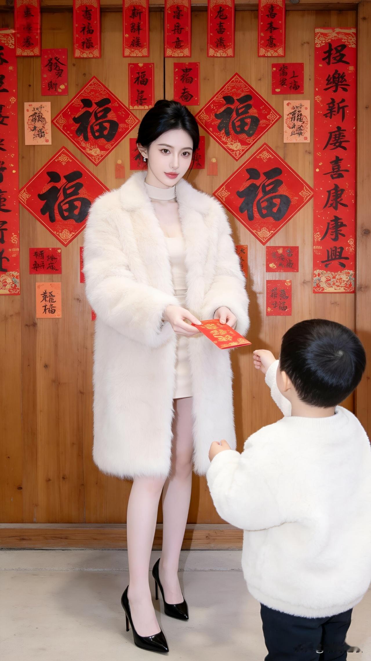 送红包了!白色皮草裹住的不只是身体,还有归家的心情。红包递出去的时候,看见的是期待的眼神,听见的是熟悉的乡音。木门上的"福"字贴了一年又一年,有些传统,越重复越温暖。新年 贵气感皮草 高端贵气红包