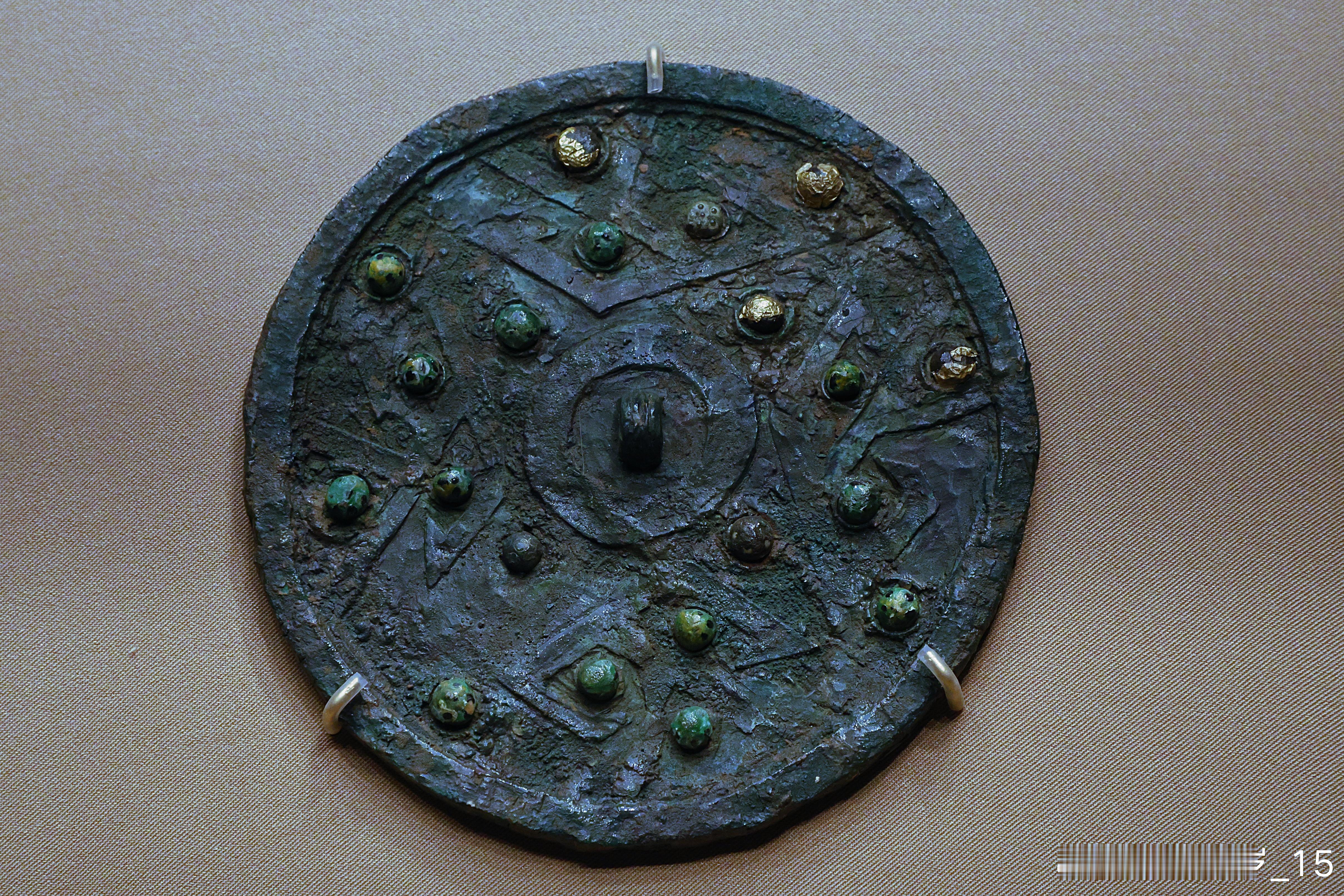 我的2026 【中国之中-中原古代文明精粹】四山纹镶嵌琉璃珠铜镜战国 (公元前475-前221年)洛阳博物馆藏洛阳西工区战国墓出土。这种琉璃珠饰工艺源自地中海东岸,并在战国中晚期的楚国得以大规模仿制与生产。洛阳虽非制镜中心且出土铜镜少,但却以嵌金银、鎏金及镶嵌琉璃等特种工艺镜著称,可能是为周王室或高级贵族专门铸造。清华大学艺术博物馆展出2026.2.8约会博物馆 文物