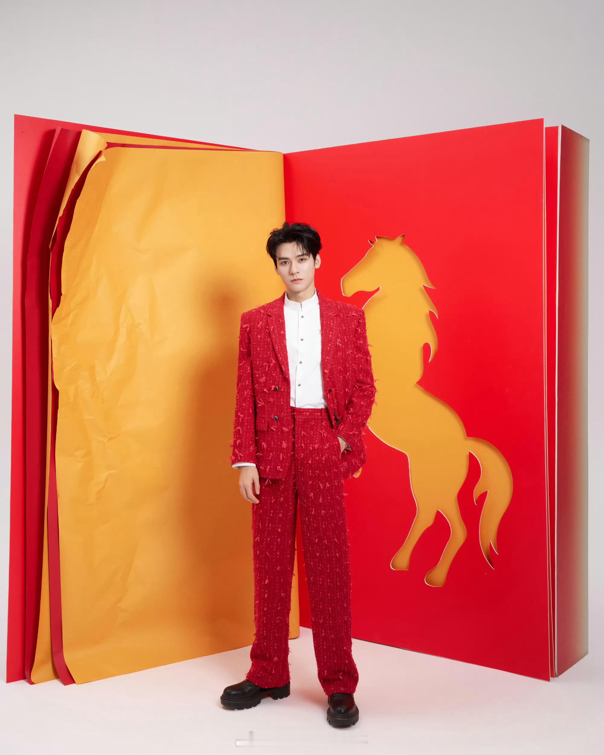 田栩宁舞狮田栩宁好适合红色啊,喜气洋洋过大年帅哥新年好