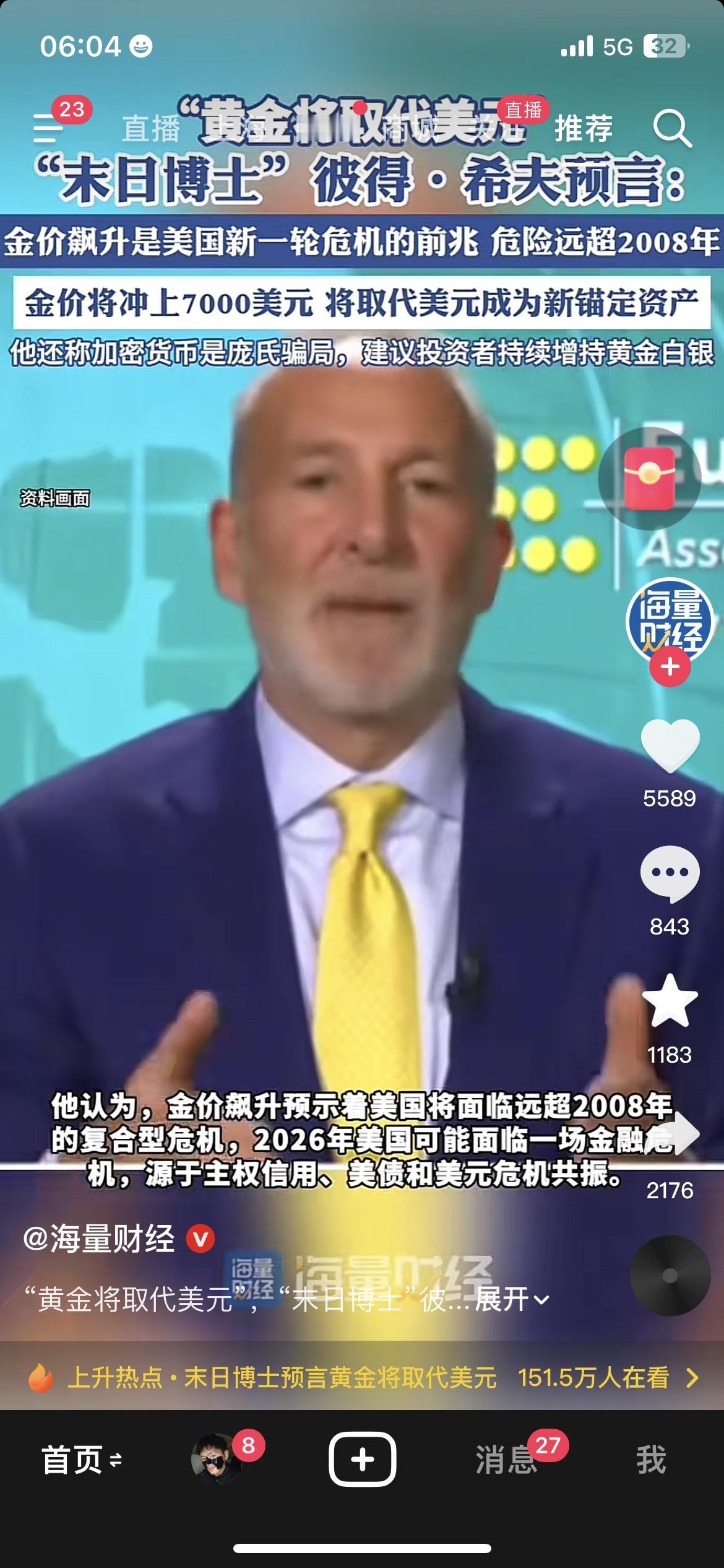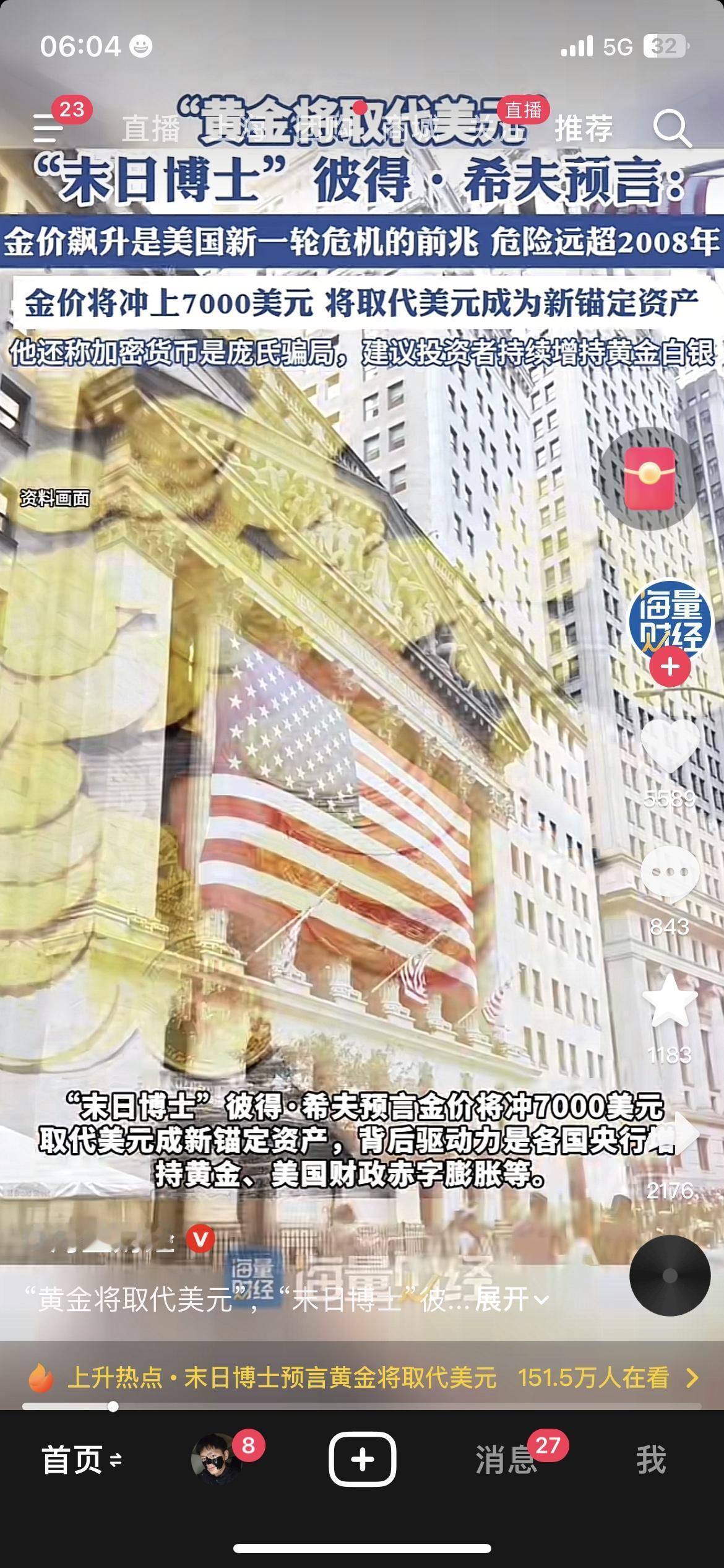 末日博士”再放猛料:黄金或将取代美元,金价有望冲击7000美元,还直言加密货币是庞氏骗局。 很多人一听就慌,其实完全没必要。 黄金从来不是暴富工具,而是压舱石。 不追高、不梭哈,根据自己情况配置,才是最稳的思路。 黄金投资 美元