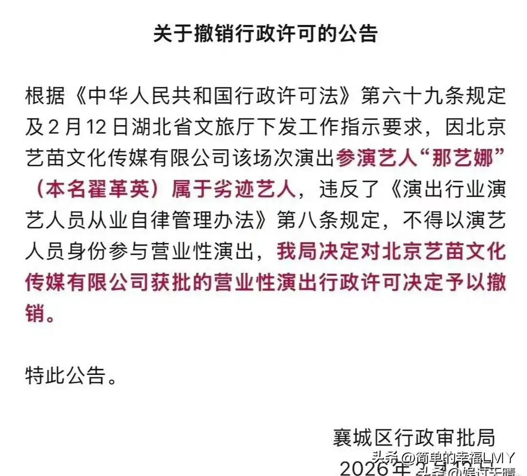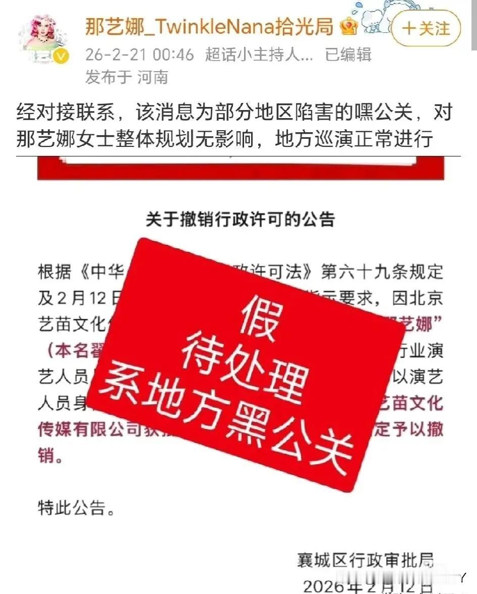 脸皮真厚!近日,有媒体报道那艺娜被封杀了,原定的演唱会也被襄城政府撤销了,并在公告里明确的说那艺娜是劣迹艺人。 消息一出,才算有人想起这号人物——前几年装成俄罗斯人直播,卖假货被封号的事,原来就是她。本以为这事儿也就悄无声息翻篇,毕竟2月12日的公告,过了八九天都没掀起波澜,可见她的名气实在一般。 谁料想,她的工作室跳出来了,说公告是假的,是有人买黑热搜搞事情,还放话演唱会照常举行。这操作,连网友都看傻了。敢把官方通报说成“黑公关”,公然对着干,这年头还有这么大胆的? 要说劣迹,她可不是空穴来风。装外国人骗流量,卖假货坑消费者,哪一样不是踩红线?平台早给过教训,封号就是明证。现在政府部门依规处理,她不低头认错就算了,反倒硬刚,这不是自寻死路吗? 以前常说“人要脸,树要皮”,可到了那艺娜这儿,好像成了耳旁风。她大概算准了自己名气小,折腾一下能博眼球?还是真觉得能拧过官方的胳膊? 结果呢?工作室一发声,热搜直接炸了。原本没多少人关注的事,这下全国人民都知道了。评论区里骂声一片,“劣迹艺人还敢嚣张”“连政府都敢怼,太狂了”…… 以前可能还有人不知道她是谁,现在好了,凭着这波“作死”操作,彻底“火”了——只不过是骂名。官方的公告,白纸黑字盖着章,代表的是公信力。 别说一个艺人,就是再大的腕儿,触碰了底线,也得受规矩管着。那艺娜工作室偏要逆势而为,把公告说成假的,这不是挑战规则是什么? 其实她但凡低调点,闭紧嘴巴,或许还能留点体面。毕竟没多少人盯着她,风头过了,说不定还能在小圈子里混口饭吃。可她偏不,非要跳出来喊冤,结果把自己架到火上烤。 这事儿也给所有艺人提了个醒:德不配位,必有灾殃。流量再诱人,名气再重要,也得有底线。卖假货、造假身份,本就失了本分;被处理后不知悔改,反而硬刚官方,更是错上加错。 现在好了,不仅官方要封杀,网友也自发抵制。演唱会肯定黄了,以后想再露面,怕是难上加难。这就叫“自作自受”,怨不得别人。 说到底,艺人拼到最后,拼的不是名气,是人品。观众的眼睛是雪亮的,官方的规矩是严明的。想在这行混,先学会做人,守住底线。不然,再厚的脸皮,也经不住一次次作死——摔下来的时候,只会更惨。 晒图笔记大赛