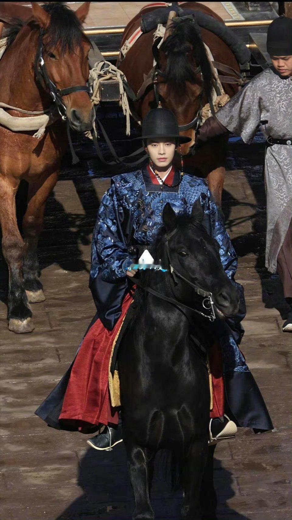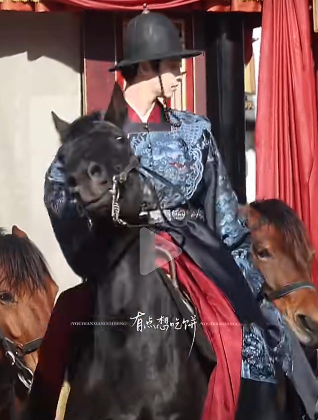 何与《窈窈有期》路透,萧靖西一身蓝袍帅气骑马