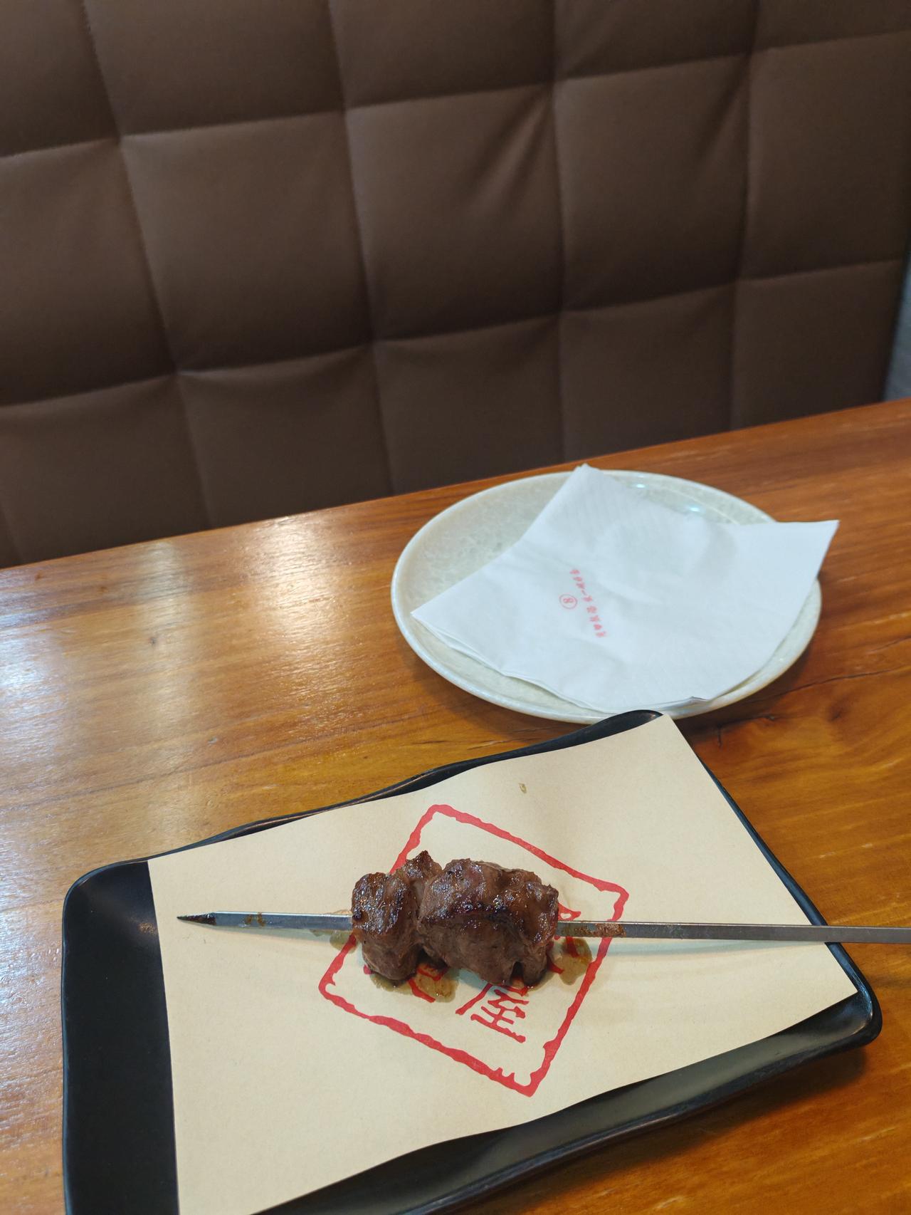 这一串牛肉9块 我还以为很大呢 说是安格斯肥牛 不知道值不值