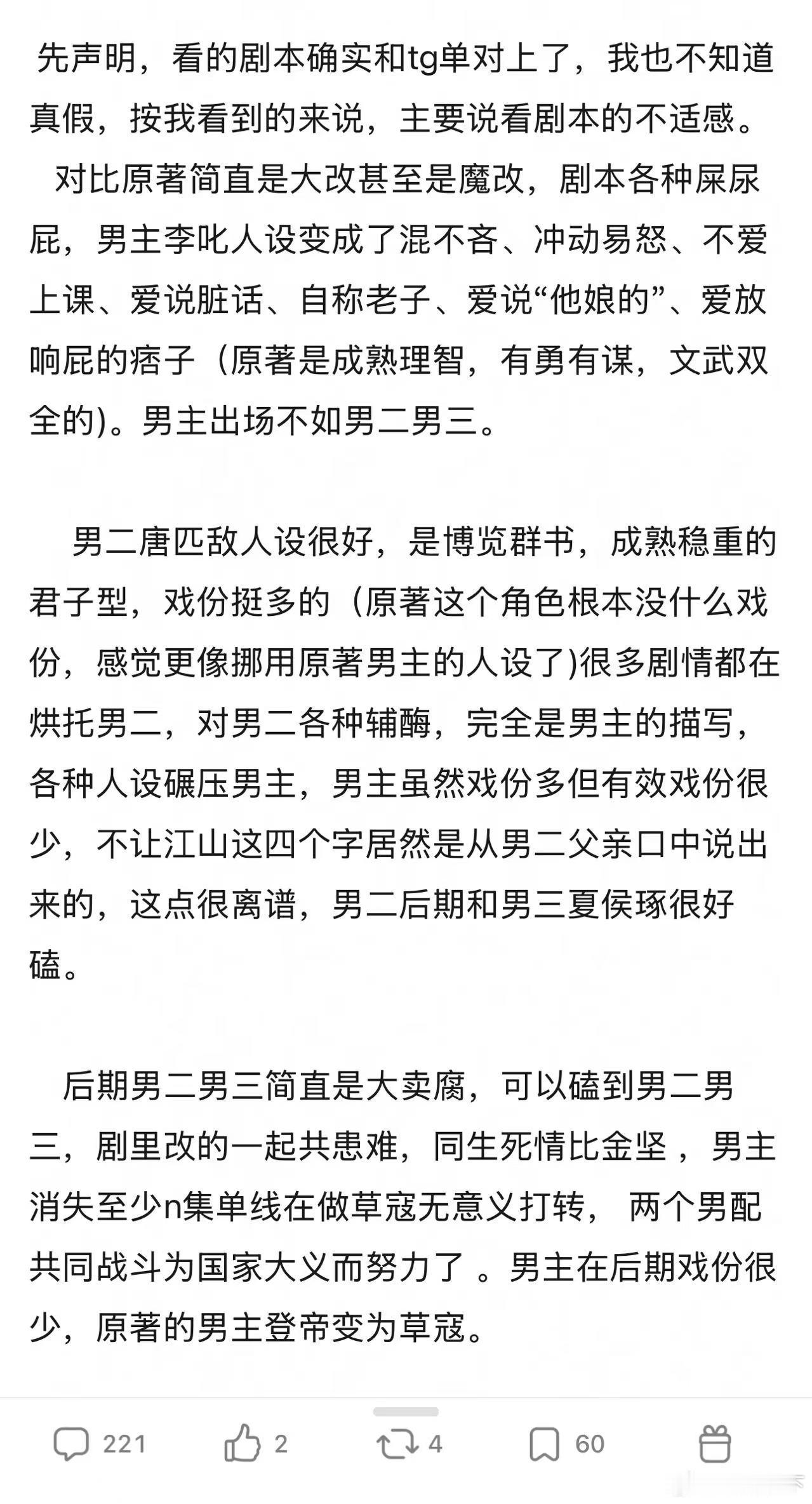 贾士凯都强吻了,我怀疑不让江山咩老师那个角色应该没那么差,可能低开高走,不然贾士