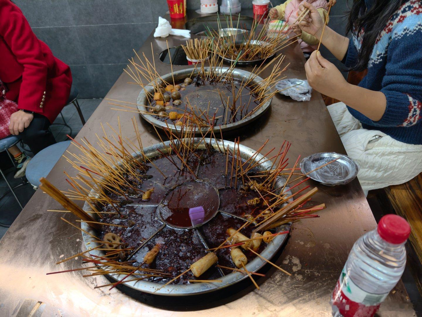 找来找去发现益阳麻辣烫最出名就尝试了一下确实没见过这样的麻辣烫跟四川串串一样,按竹签算钱微博美食尝鲜计划