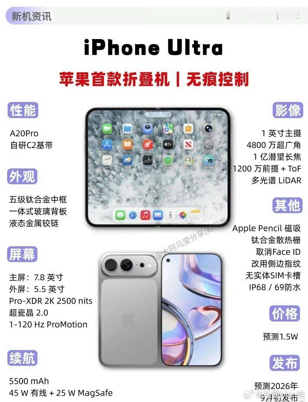 • 优势:iOS生态的无缝适配、苹果对屏幕折痕的极致优化、A系列芯片带来的性能碾压,将让折叠屏从“尝鲜品”变成“主力机”。