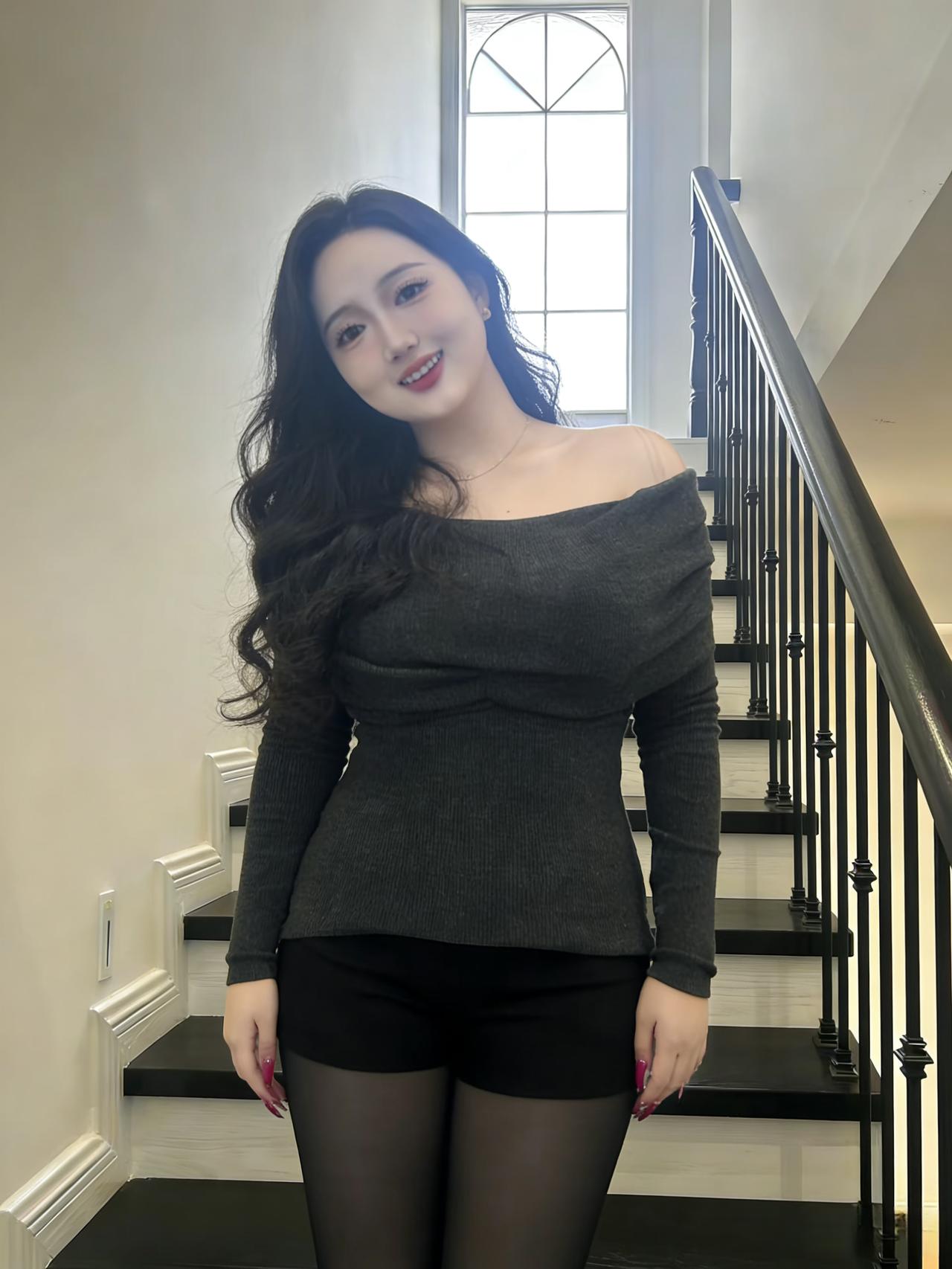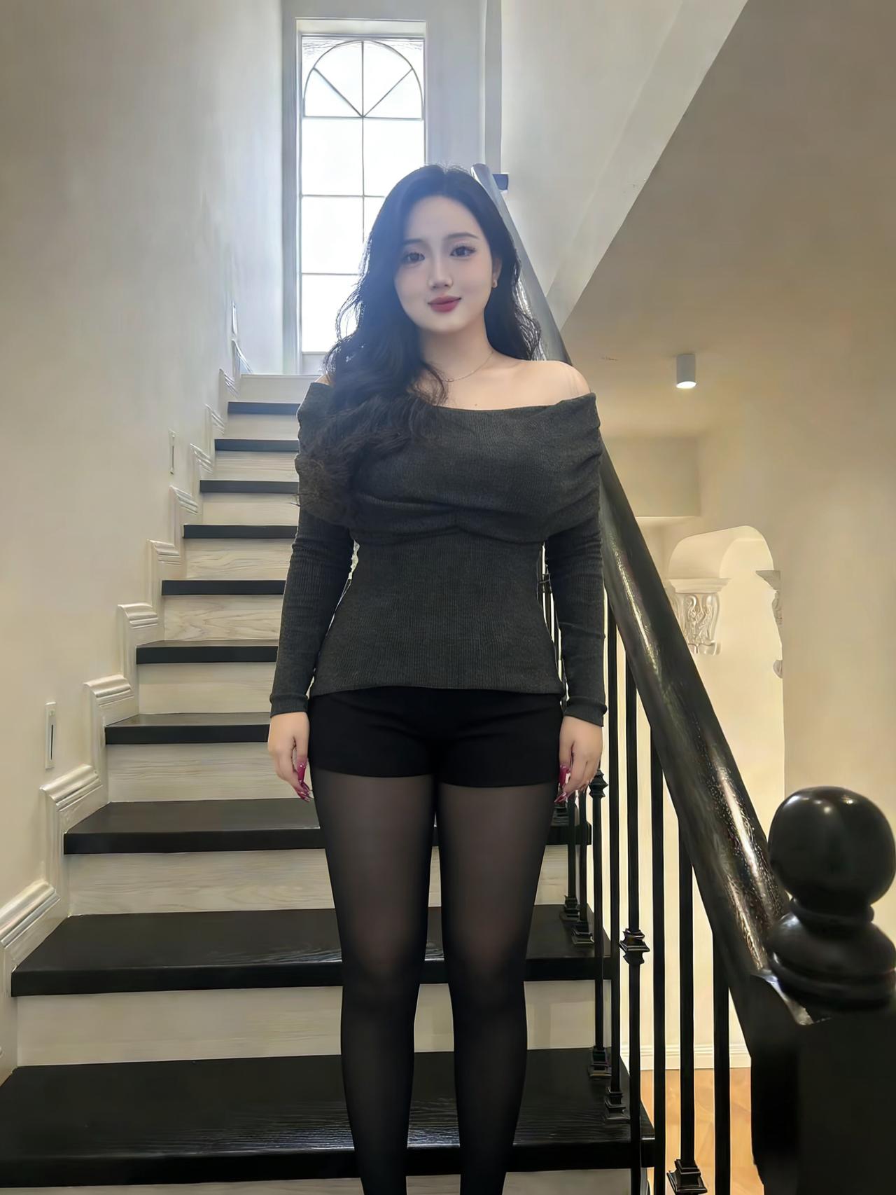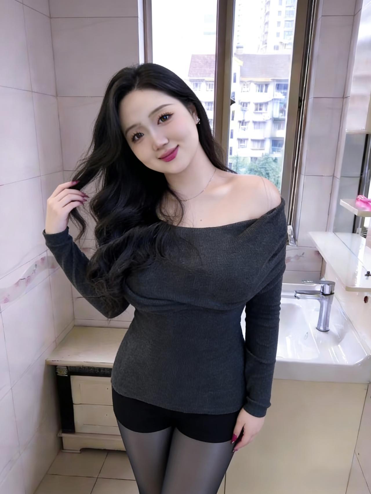 她把锁骨埋进针织衫的灰 像春雪半融在山肩 黑丝顺着腰线垂落 裹住瓷白的脚踝,在瓷砖上轻颤 ~ 浴室的水汽漫过镜沿 模糊了窗外的楼群 她捻起一缕卷发 指腹沾着刚涂的红,像熟透的樱桃 ~ 厨房的米锅咕嘟着白汽 米妮贴纸在瓷砖上偷笑 她斜倚在台面 腰肢弯成一道软弧,接住光的碎片 ~ 楼梯扶手的凉漫过掌心 黑白台阶延伸向沉默 她转身时,裙摆扫过 把影子揉进木纹的深浅 ~ 卧室的床单印着细碎花纹 她垂首的弧度里 藏着半片月光,和未说出口的温柔