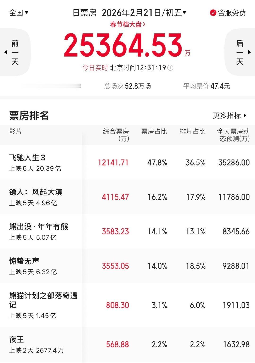 历年春节档数据比较来了,打脸那些睁眼说瞎话的电影博主。到底是谁的大环境好,谁赶上了好时候啊?![what] 2023年是2019年以来排片场次最少的一年,大幅低于24、25、26年这三年。2026年的场次是2023年的1.415倍,2025年是2023的1.308倍。 也就是说,比方无名8%的排片,实际场次只占2026年【5.65%】!只占2025年的【6.11%】。 今年春节档,前四名排片都在13%以上(图2),实际场次比无名多两三倍。 2023年观影人数也是2018年以来倒数第二的,远低于24、25年。(26年档期尚未结束) 还有天气大环境,今年春节天气好得很,很多人去看电影。2023年春节早,天气很冷。而无名都是早出夜归档,看看图3,那是多艰难。 还有无耻的商战大环境,无名被同档期影片甩污名大泼黑水,仍然从恶劣的环境下逆袭。 怎么有人好意思以无名票房没过十亿来挽尊?今年春节档一部二部排那么多场次,而且还没有同行来下黑手,这么好的大环境,除了飞驰人生,别的票房也不咋滴嘛。[抠鼻]小心别十亿都没有哦。