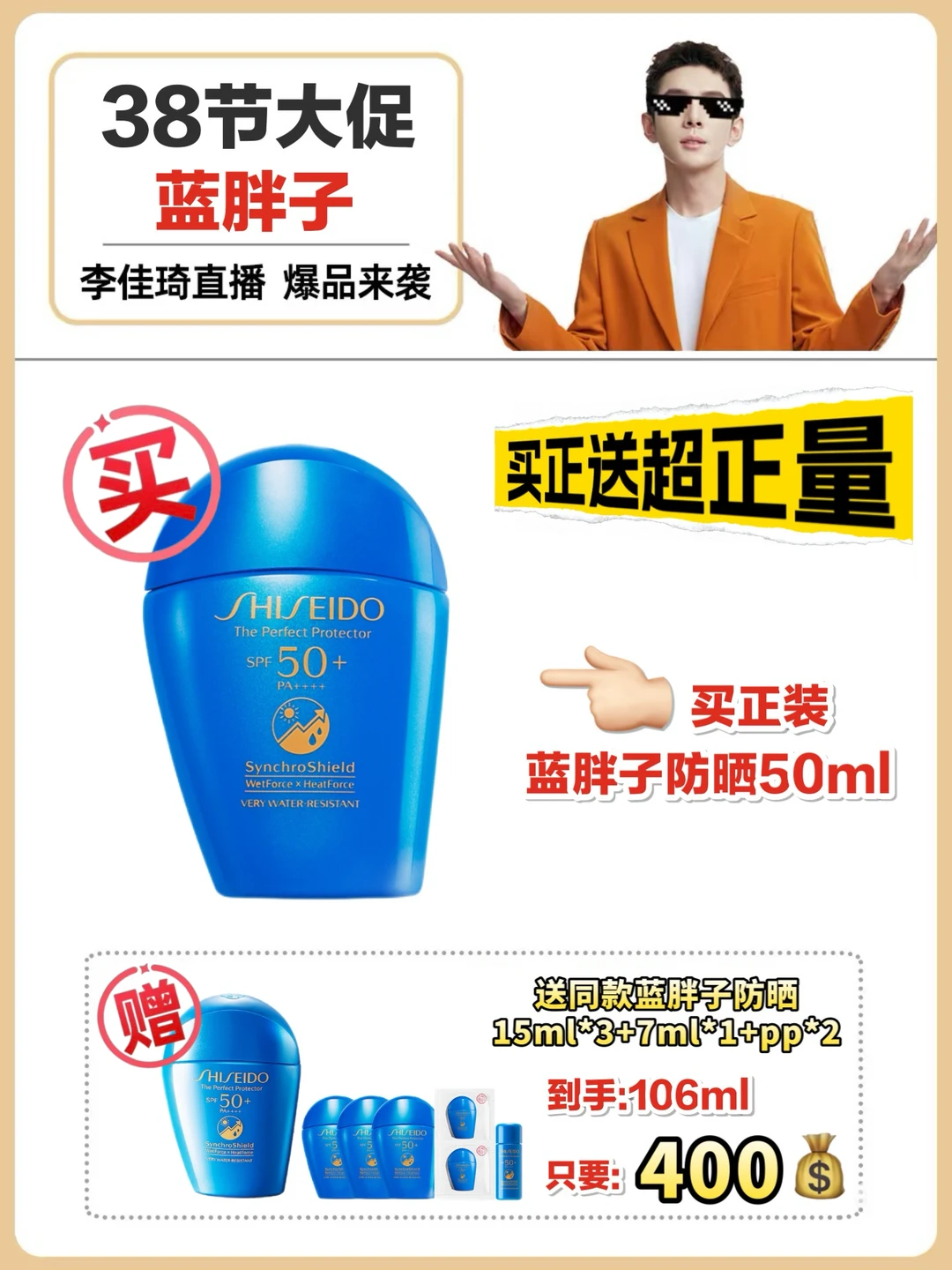 资生堂蓝胖子蓝胖子防晒防晒推荐防晒分享李佳琦李佳琦直播间李佳琦直播预告李佳琦38节38必抢清单38大促38节攻略