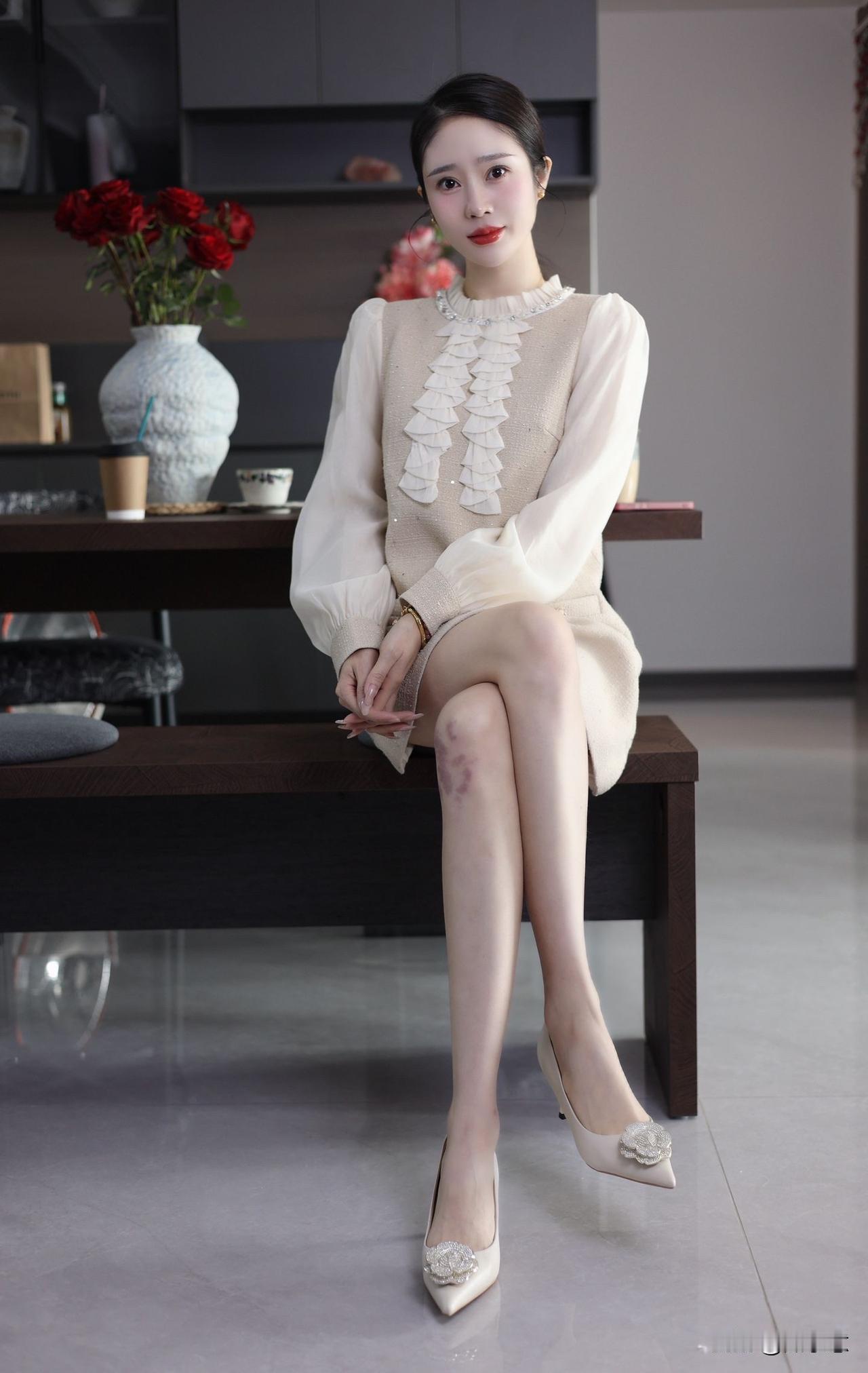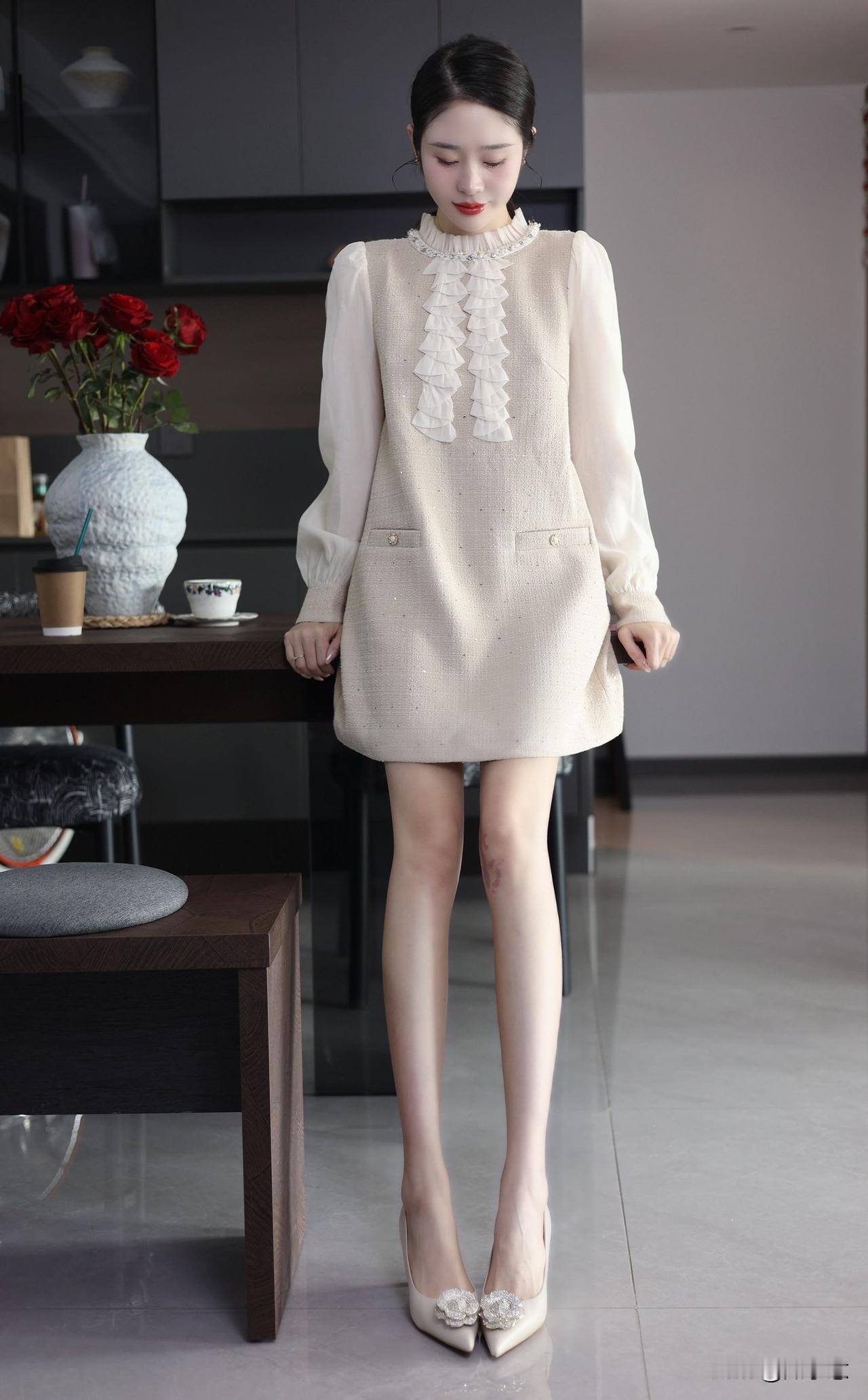 优雅气质穿搭,米色连衣裙搭配高跟鞋,简约而不失精致!