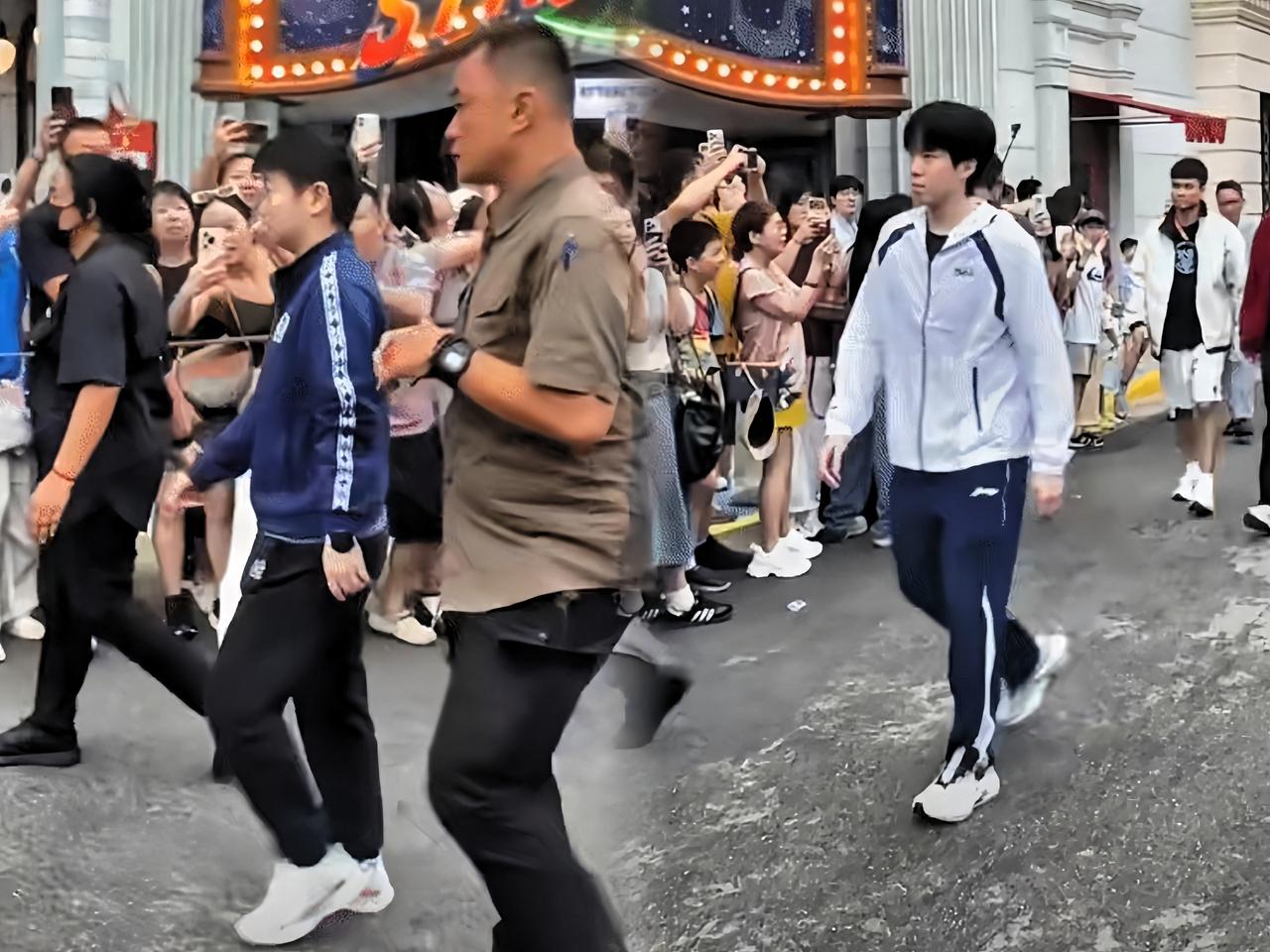 新加坡大满贯晚宴在环球影城办的, 莎莎和大头前后脚到的现场, 好家伙,那场面简直了! 大头今天这发型穿搭真是支棱起来了, 少年感拉满! 后面莎莎也跟着到了, 俩人身边都有安保陪着。 他俩一出现, 现场球迷直接炸了, 全程都在喊: “大头新年快乐!” “莎莎新年快乐!” “明天比赛加油啊!” 比赛明天就开打了, 两位都加油冲!