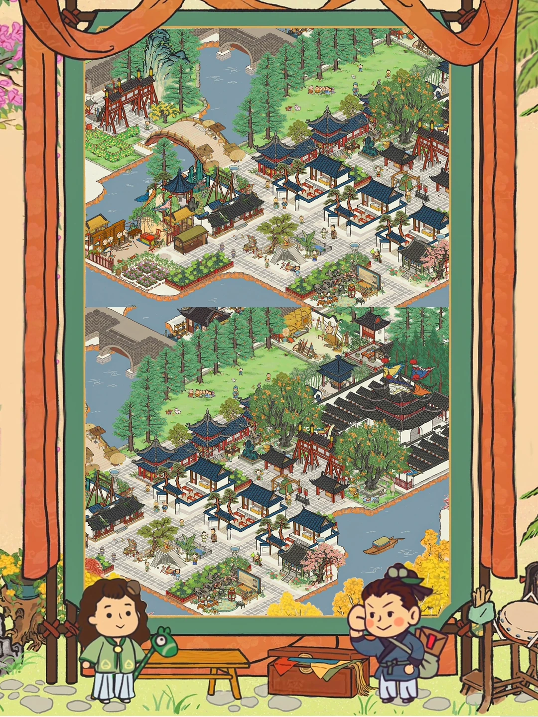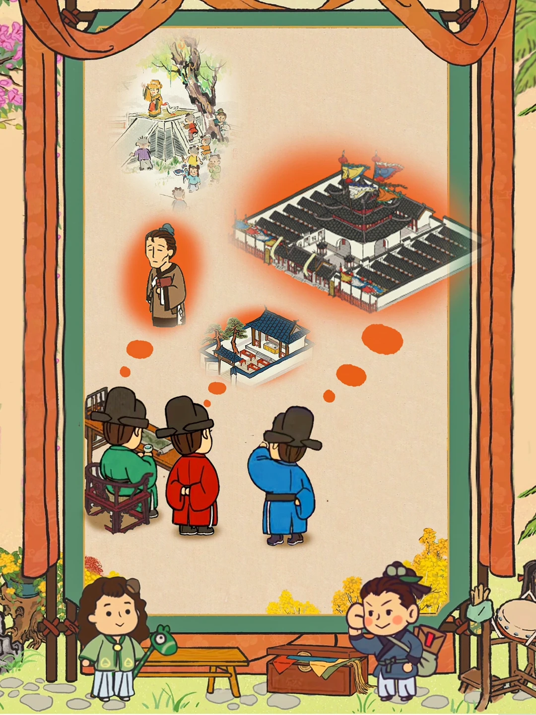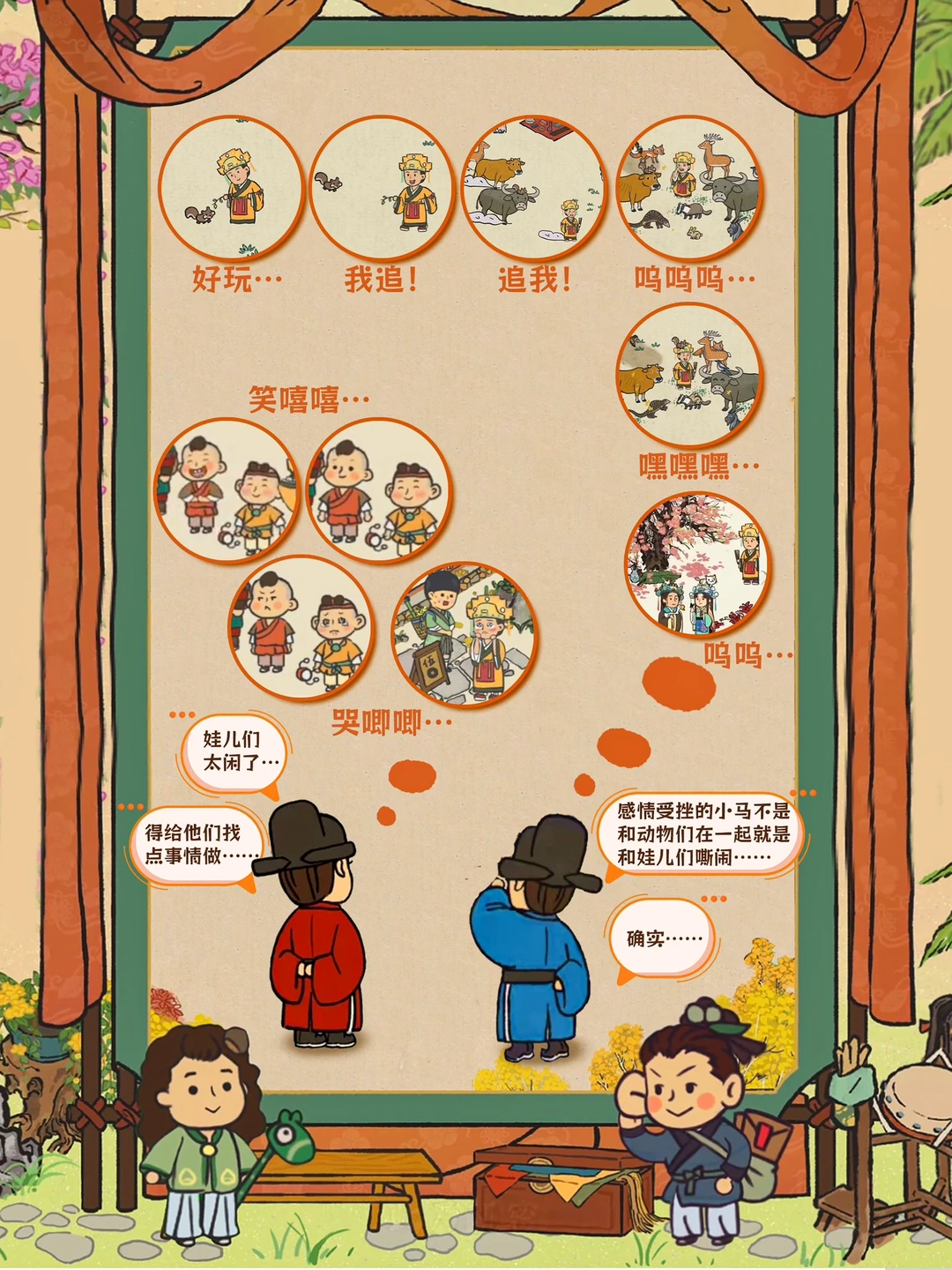 💛百景图里娃娃们每天都在干啥 🧡娃娃榜来袭,扎啾啾的,拎着饼子的,拿糖葫芦的…… 💛太闲了,太闲了,本大人决定送他们去应天府上学……