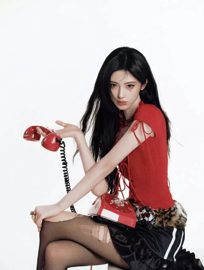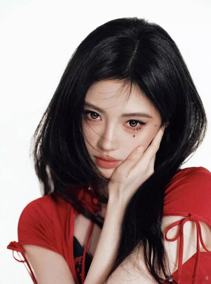 青青娱乐鞠婧祎身着红衣火辣酷飒单手托腮眼下点痣好性感