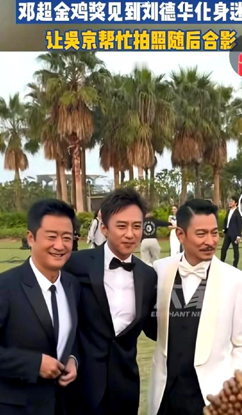 邓超逮住刘德华,一把薅过吴京按快门,这哥们儿是真不把京哥当外人啊。 看见刘天王,邓超两眼放光,走路都带风。二话不说,先活捉偶像拍单人照,拍完还嫌不过瘾。 回手就把旁边的吴京拽过来,“京哥,来!”。你看最后那张世纪同框,邓超嘴角咧到后脑勺,纯纯的美冒泡了。 一个是优雅天王,一个是硬核战狼,一个是嘚瑟迷弟。这三位,你到底站谁?