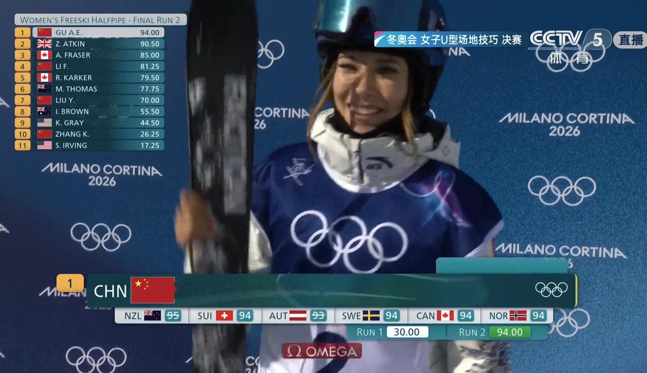 冬奥会 谷爱凌第二滑94.00分