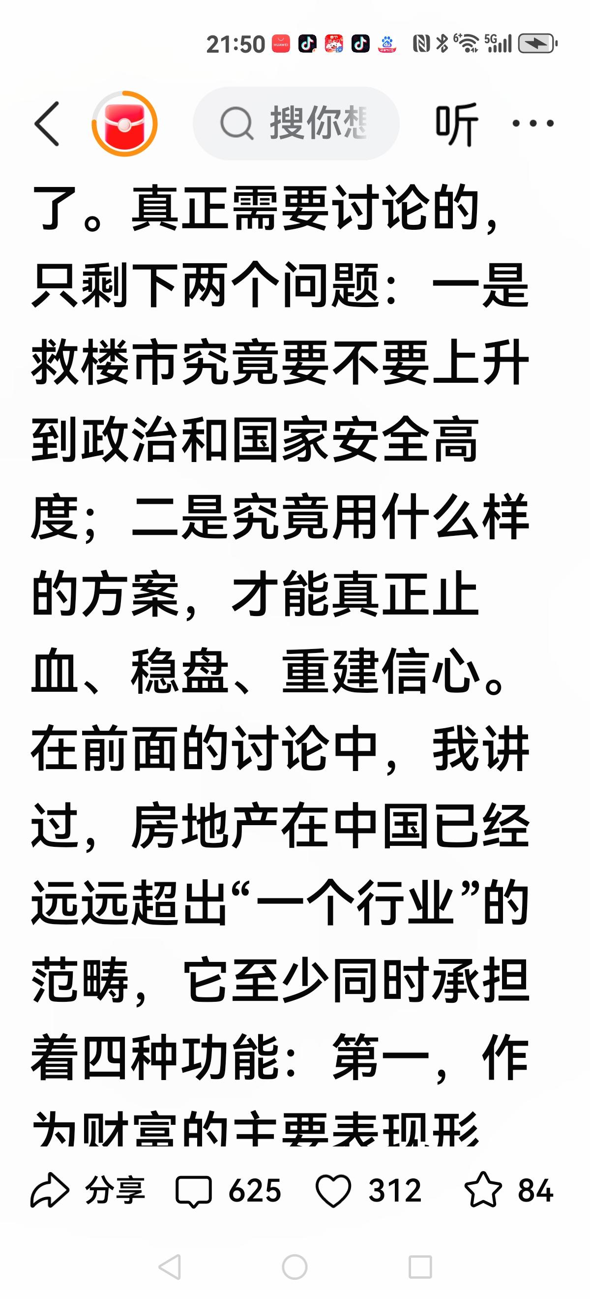 【几年以后会有验证】 董藩: 一是救楼市究竟要不要上升到政治和国家安全高度; 二是究竟用什么样的方案,才能真正止血、稳盘、重建信心。 这番话估计北哥的跟随者要暴跳如雷,可能要拼命了,但这句话可能几年后会得到验证。 美国在经济危机中没有救雷曼兄弟,而是救两房,很快走出危机。 同样我们害怕楼市价格暴涨,多重打压,随着经济疲软,楼市一蹶不振,连锁反应逐步显现,几位房地产的附带行业老总自杀足以说明杀伤力的巨大。 如果再不恢复信心,任其悲观情绪弥漫,整个房地产成为少数人的乐园,大部分人都在二手房里淘金,这个行业彻底滑车,附属行业最终多米勒骨牌效应一个一个倒闭。 人们买房意愿是有的,信心严重不足,正是攻守两方博弈之际。