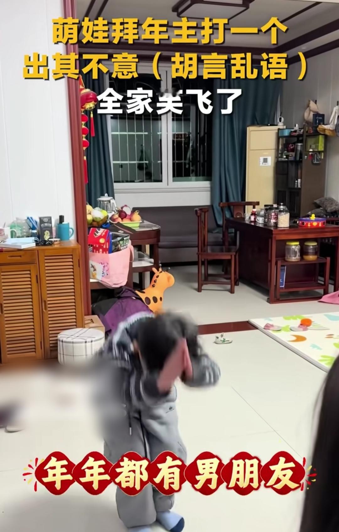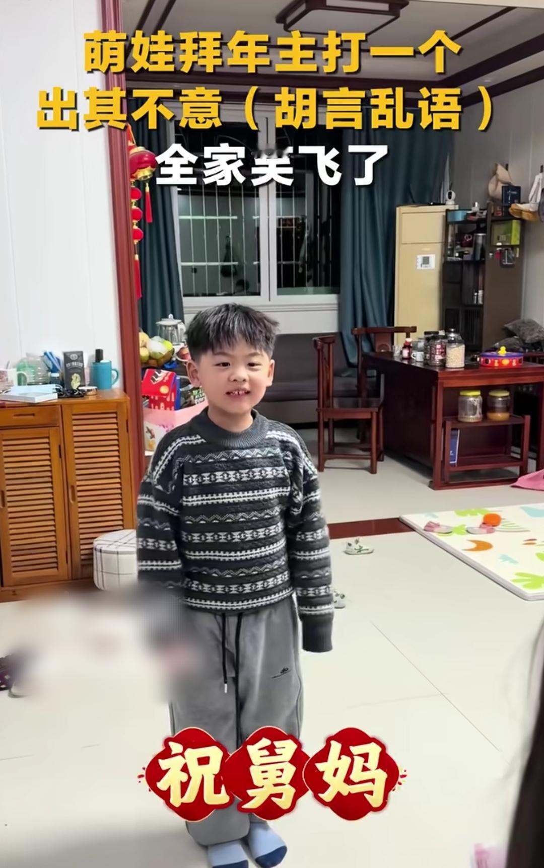 谁能抵得住萌娃拜年的可爱暴击!萌娃们的拜年话完全不按常理出牌,主打一个出其不意,把全家都逗得笑翻了。 本以为是规规矩矩的新年祝福,结果全是童言无忌的惊喜,小孩姐大方祝外公外婆早生贵子,小男孩还贴心祝舅妈年年有男朋友,每一句都语出惊人,却又可爱到让人不忍心反驳。 这大概就是过年最珍贵的美好吧,孩子的世界简单又纯粹,没有刻意的讨好,只有最直白的表达。一句稚嫩的祝福,就能让家里满是欢声笑语,或许这才是年味最真实的模样吧。