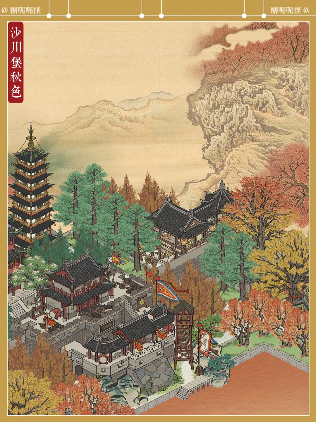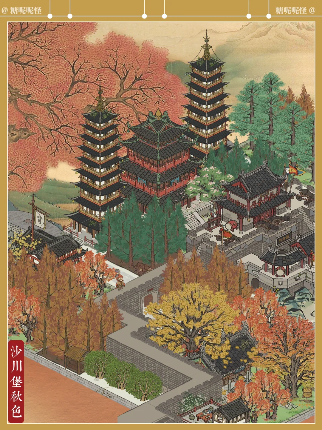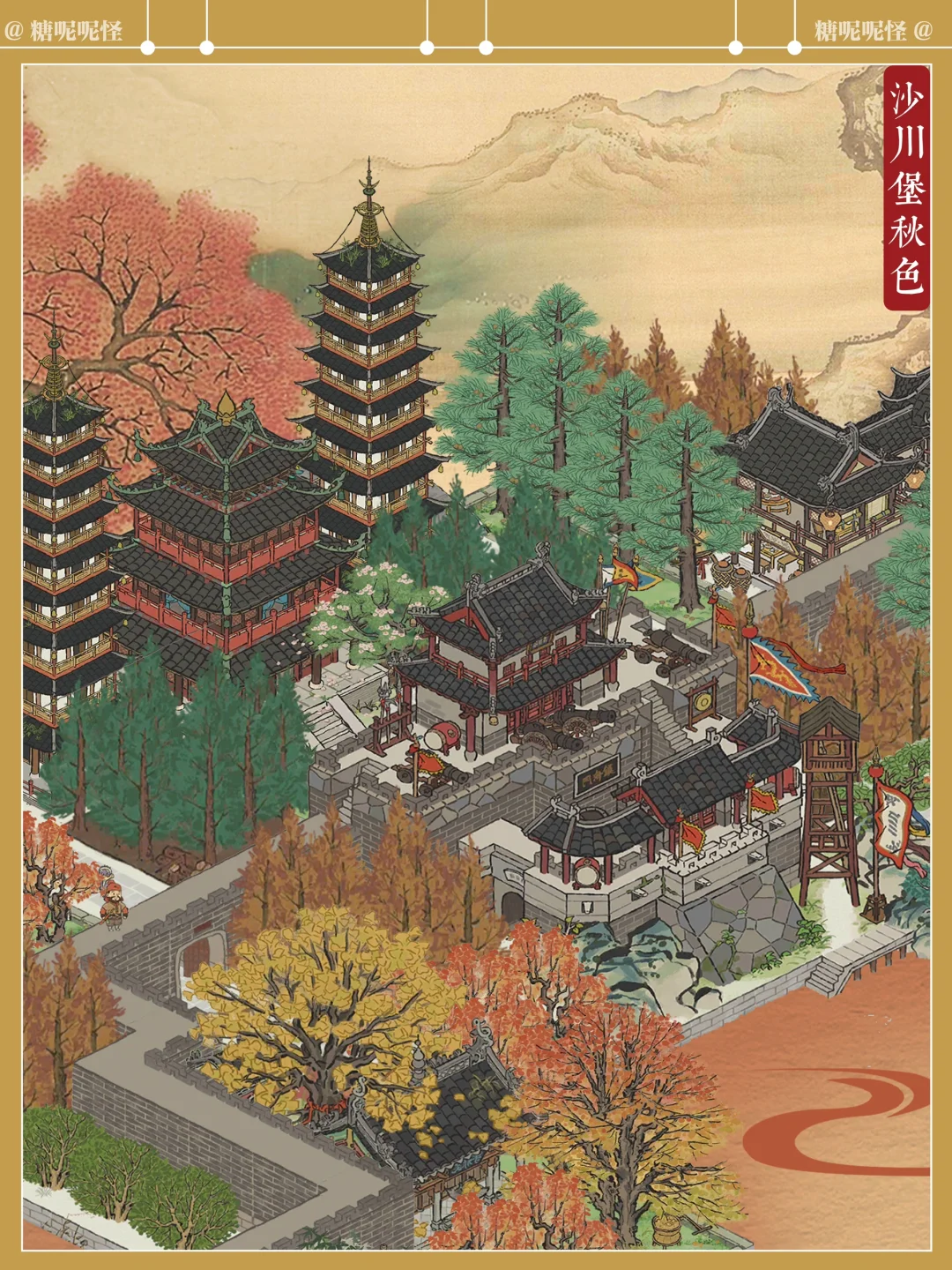 松江府沙川堡的秋色,是糖大人最爱的秋色…… 时至白露,糖大人设计建造的松江府沙川堡来到了最美的时节…… 抵御海怪之地,也多了几分秋日的绝美…… 正是这边城巍峨之地,守护着城内的百姓不受海怪侵袭…… 欢乐与悲戚,到头来,尽数湮灭在那场天降的大火之中……