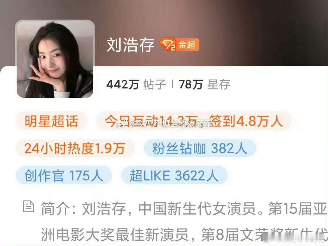刘浩存超话金三达成刘浩存00花唯一金三刘浩存在非剧播期 且无生日的枯水期,达到了超话金三 粉丝粘性这块没得说~目前是00花唯一金三吧?