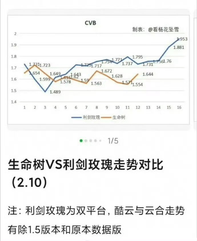生命树vs利剑玫瑰vs小城大事CVB走势对比。最差的的不是绝对值低,而是一路下坡