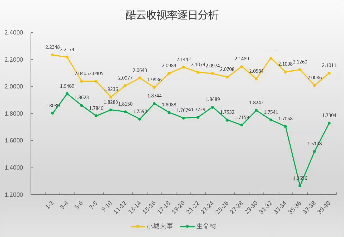 生命树vs利剑玫瑰vs小城大事CVB走势对比。最差的的不是绝对值低,而是一路下坡趋势,没有吸引到新观众也没留住老观众。