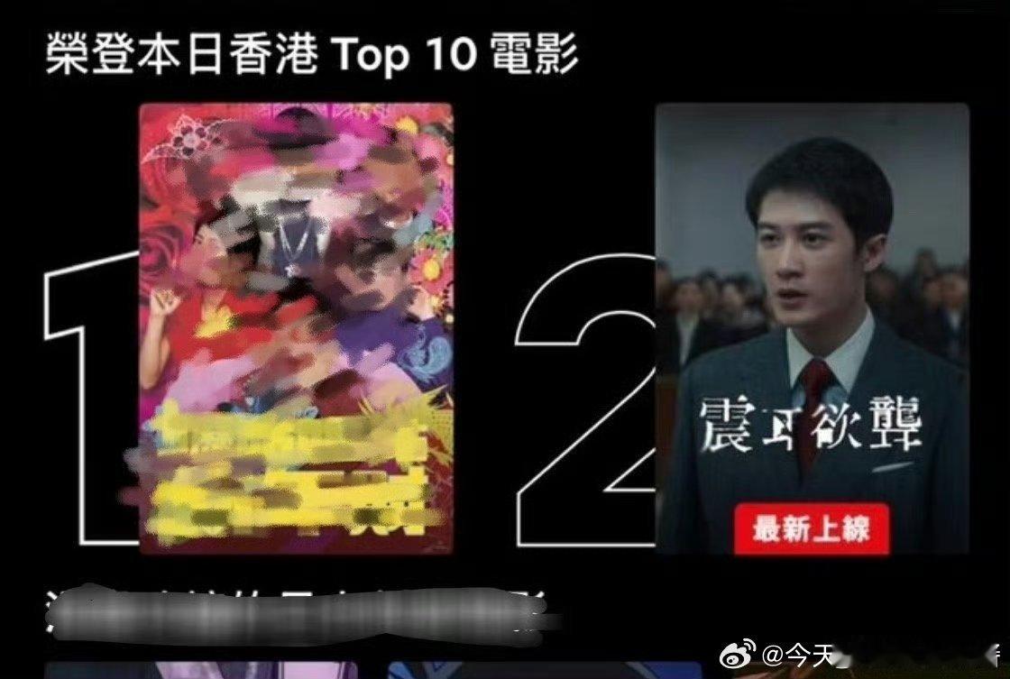 檀健次《震耳欲聋》网飞上线:台湾排名:TOP 1(电影类热播榜)香港排名:TOP 2(电影类热播榜)
