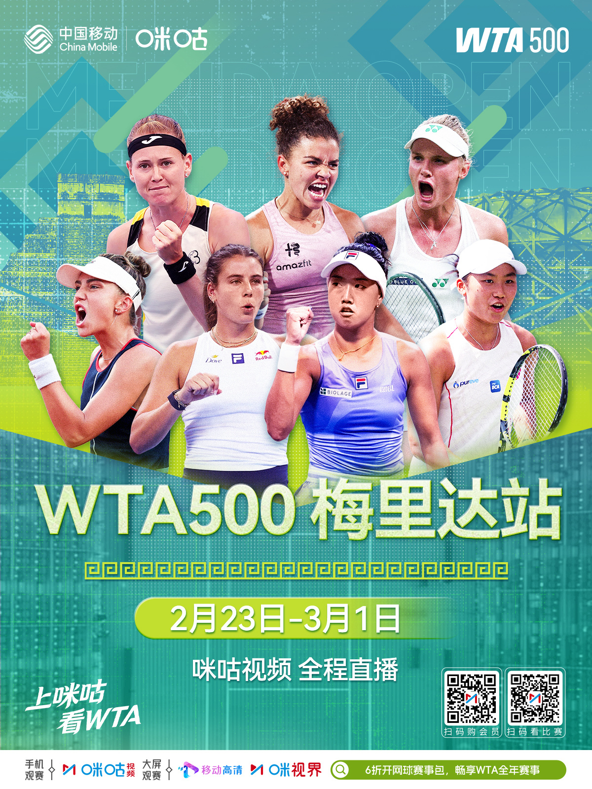 #WTA500# 梅里达站👑 鲍里妮领衔、张帅突围入正赛🎾 2月23日-3月1日 咪咕视频直播🔗 网页链接