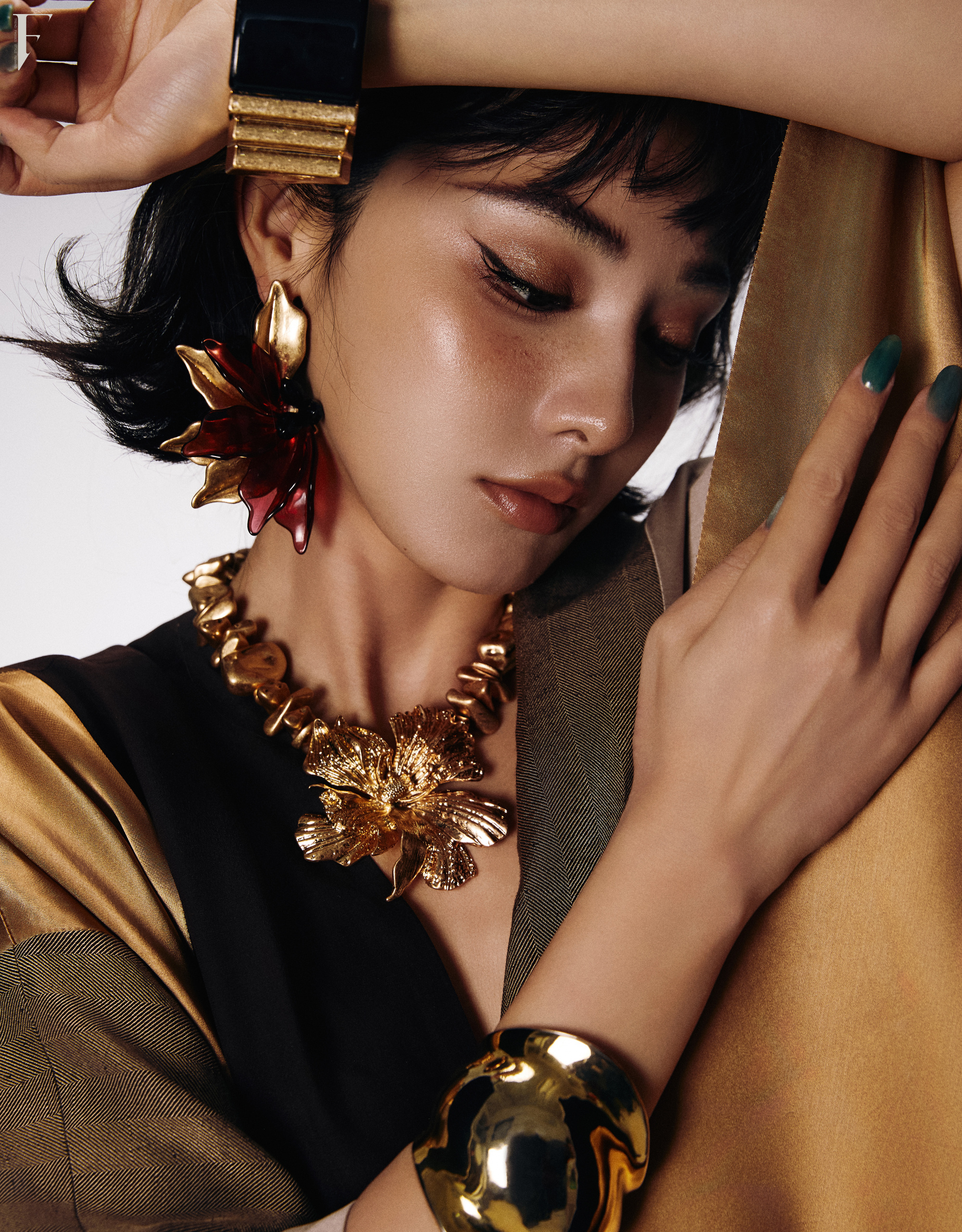 鎏金与红影在镜头里呼吸F时尚画报彭小苒复古鎏金大片造型:Noah Zhao 摄影