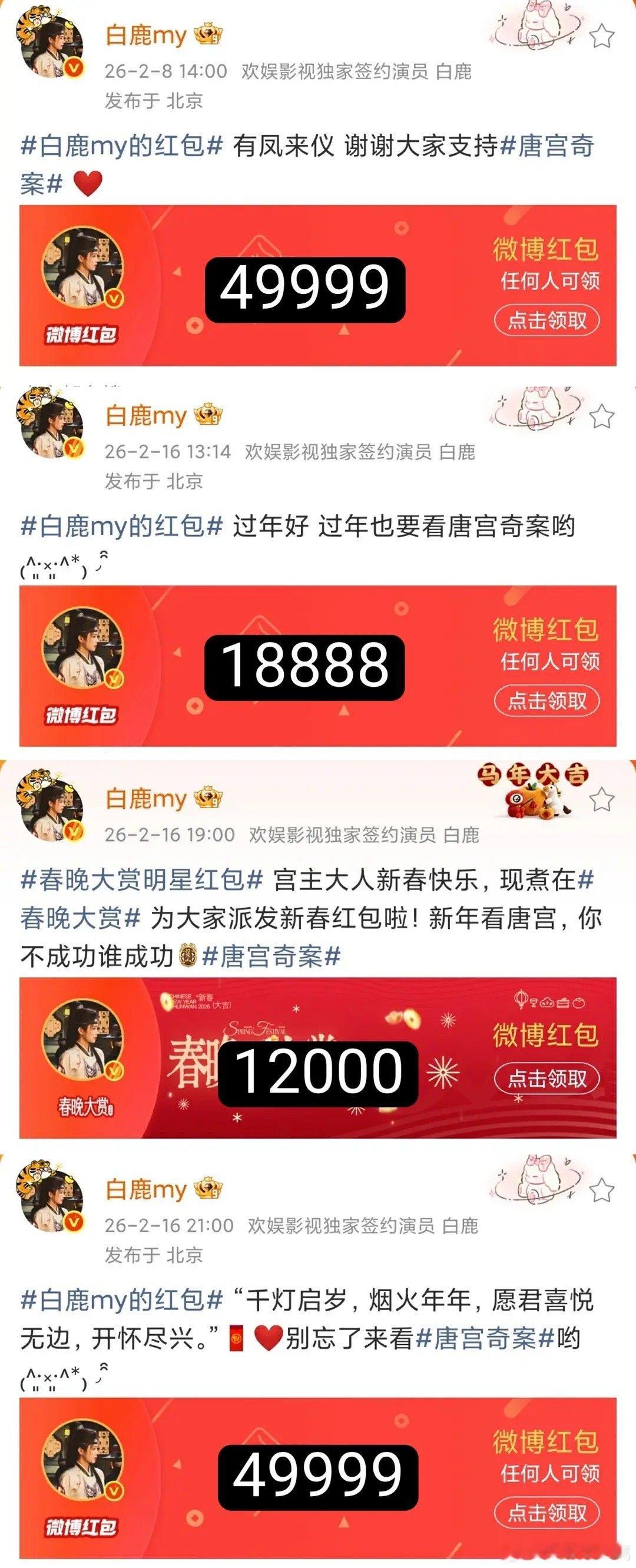 白鹿为唐宫奇案发22万红包,上春晚都在宣传剧,就这样还被说不剧宣有点太过分了吧