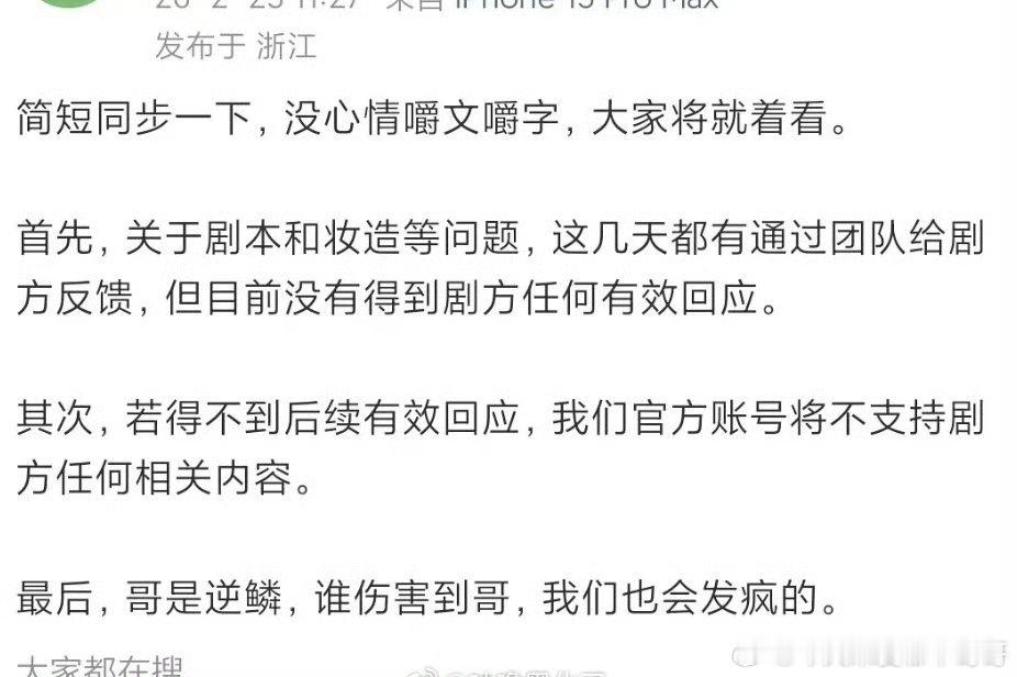 杨洋对接发文关于《不让江山》:没有得到剧方的任何有效回应,将硬刚到底