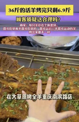 重庆一女子,除夕夜带着家人去到一家店铺吃烤全羊,来到店铺后女子就点了一个1188块的套餐,并选了一只36斤的羊来烤。可烤好后的羊肉端上桌时,女子当时就觉得不对劲了,因为这看起来36斤肥肥的羊,怎么烤出来却小了不少,还干瘪干瘪的,后双方起争执后,女子报了警,民警现场一称才发现,这烤出的羊竟然只有6.9斤了。 对此涉事门店工作人员也解释说,当时处理羊的过程,除了烤的时候,女子一家是全程见证了的。这烤完后的羊肉缩水,主要是因为每只羊都存在个体差异,喜欢吃草和不喜欢吃草的,喜欢运动和不喜欢运动的羊,烤出来的都是不一样的。 为此女子已经向属地市场监管部门反映,并将此事发到网上,也让大伙评评理,这36斤的羊烤出来只有6.9斤了正常吗? 对此有网友就表示:不正常,我们团队在新疆旅游,在牧民的蒙古包花1600元在买了一只40斤的活羊,秤没有问题,我们都上去称过体重。过程也是全程监督加工,最后烤完后羊肉差不多有15斤左右,还有一大锅羊杂汤,我们十二个人吃到撑。 还有网友详细分析道:按行业常规,36斤活羊的出肉量差不多是这样的,屠宰后(带骨胴体),去头、蹄、皮毛、内脏(留肾脂)出肉率为45%–50%,推算出来,36斤活羊大概有16–18斤带骨羊肉。如果是烤全羊,胴体再烤出肉率在60%–70%,一只36斤活羊烤出来大概也有10–13斤烤全羊成品。也就是烤出来是6.9公斤是没毛病的,但6.9斤就太少了。 更有网友提议:口说无凭,要是我就再选一只36斤的羊,全程盯着老板烤,然后再来称重,如果还是七八斤的样子,我付两只羊的钱,如果不是而是十几斤,那证明百分之百换了羊,必须让他退一赔十! 要过年时家里也烤了一只自家养的羊,超不多三四十斤的样子,最后烤出来确实肉少。毕竟烤全羊在烤制过程中,羊本身的水分蒸发和脂肪流失后,重量减轻也很正常,但烤好后我家那羊至少也有个10来斤吧,这6.9斤确实太少了。 所以上述网友提议的办法挺不错,那就是再烤一只36斤的活羊,并全程监督商家烤,虽然过程麻烦点,但确实可以得出一个最合理的结果。 对此大家怎么看?