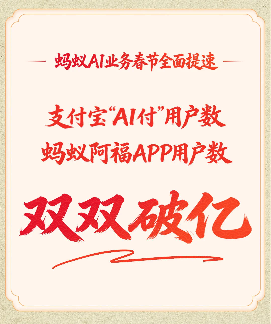 支付宝一直在搞支付创新,最近在推的AI付也很生猛,继2月12日支付笔数突破1.2亿笔后,春节后用户数也超过1亿,成为全球首个支付规模和用户数双破亿的AI原生支付产品。薅到千问奶茶羊毛的同学应该都感受到了AI付的便利,就像在复刻“二维码快捷支付”浪潮,不过这次是在Agent经济里,打通支付与服务的履约链路,说是第一个吃螃蟹的也不为过,未来的AI商业想象空间不小。