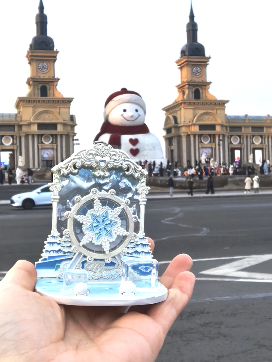 哈尔滨旅游攻略 哈尔滨大雪人 文创 哈尔滨文创 哈尔滨冰箱贴 终于买到了哈尔滨今年最卷的冰箱贴 据说可以旋转,可以流沙,带灯,可以当摆件的冰箱贴,还带AR,惊呆我了。终于全款拿下。