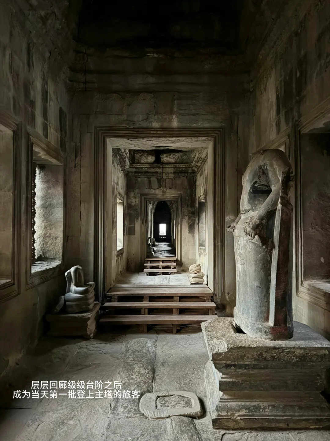 和阿谢在主塔上,那一刻会看见吴哥窟最动人的地方,是真的把整个宇宙建了出来
