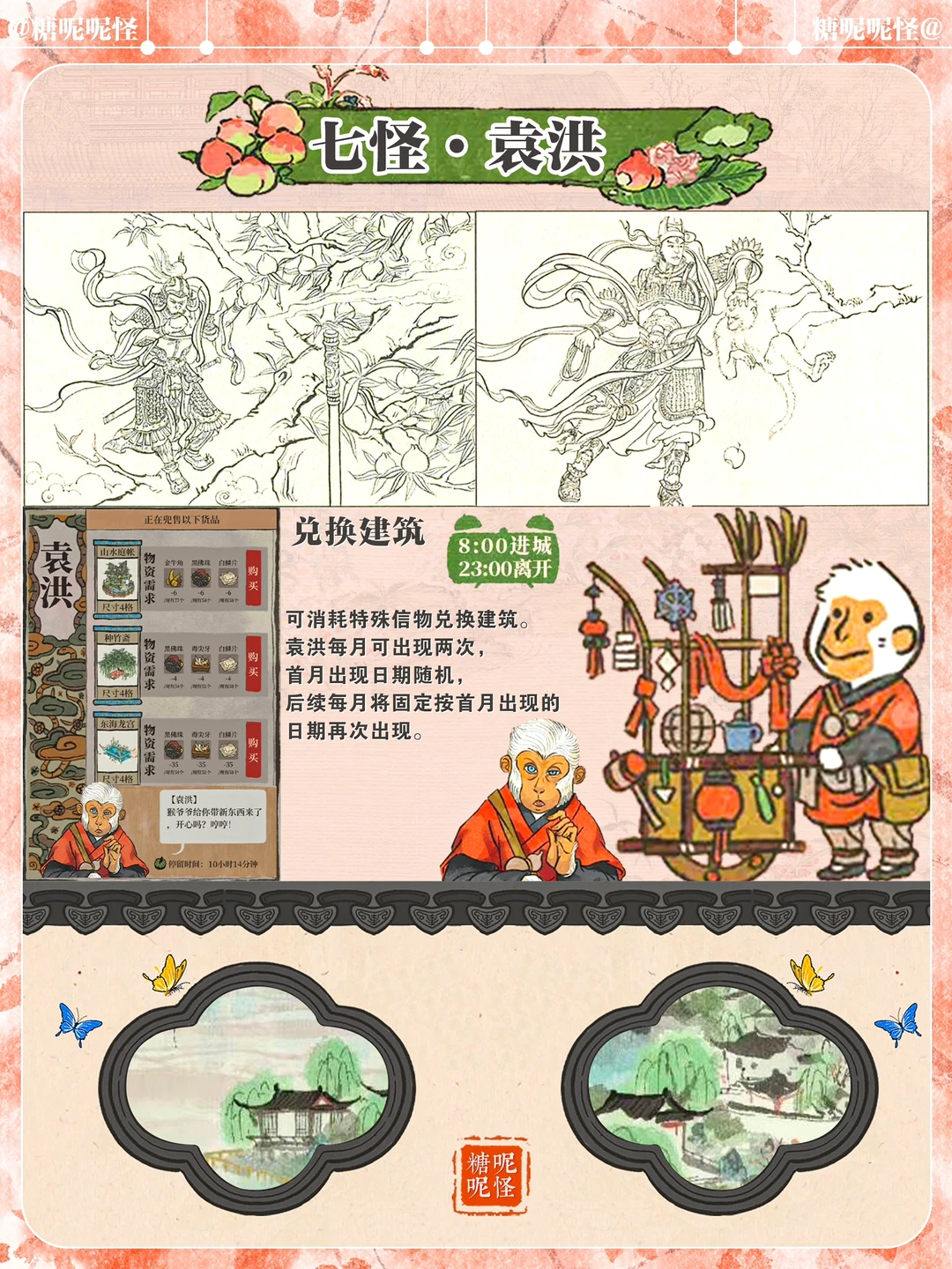 [哇R]等级大于等于>=25级,将吸引梅山七怪拜访,梅山七怪将随机出现,也可以去好友的城市兑换 [哇R]梅山七怪中的袁洪处,可消耗特殊信物,兑换建筑。