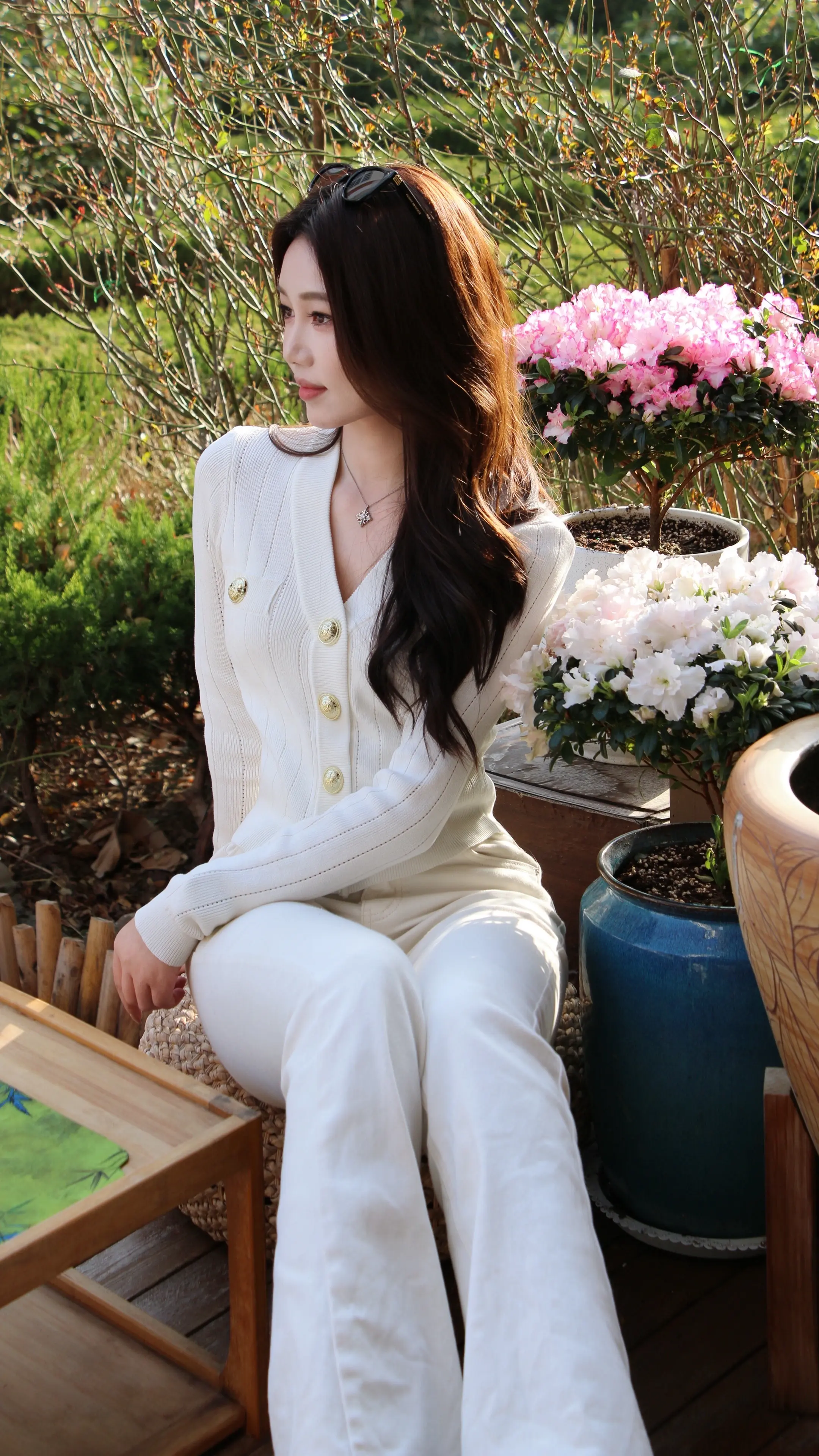 从房子走出去 站在春天中间。