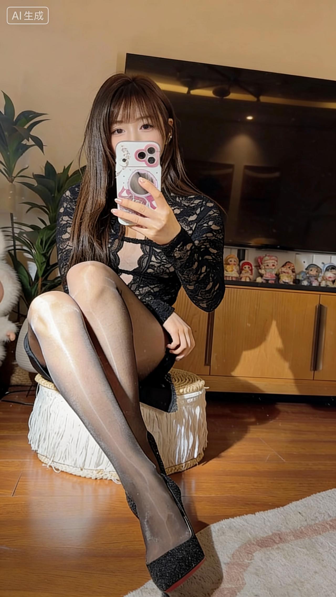 1. 光影与质感的极致碰撞 黑丝在暖光下泛着细腻的光泽,像一层薄纱包裹着腿部的流畅曲线,每一寸肌肤的轮廓都若隐若现。高跟鞋的鞋跟纤细却有力,稳稳托住姿态,让腿部线条被无限拉长,黑丝的柔与高跟鞋的锐,在光影里交织出致命的性感张力。 2. 细节里的精致美学 黑丝的哑光与高光交织,在走动或静止时折射出不同的质感,而高跟鞋的亮面材质又与黑丝形成微妙对比,既低调又张扬。蕾丝上衣的镂空设计,恰好与黑丝的朦胧感呼应,让整体造型在性感中多了一份高级的层次感。 3. 姿态中的致命诱惑 当她屈膝而坐,黑丝包裹的腿部线条在光影中起伏,高跟鞋的红底在木地板上若隐若现,每一个角度都在诉说着女性的自信与魅力。这种美,是藏在细节里的诱惑,是无需刻意却自带锋芒的气场。