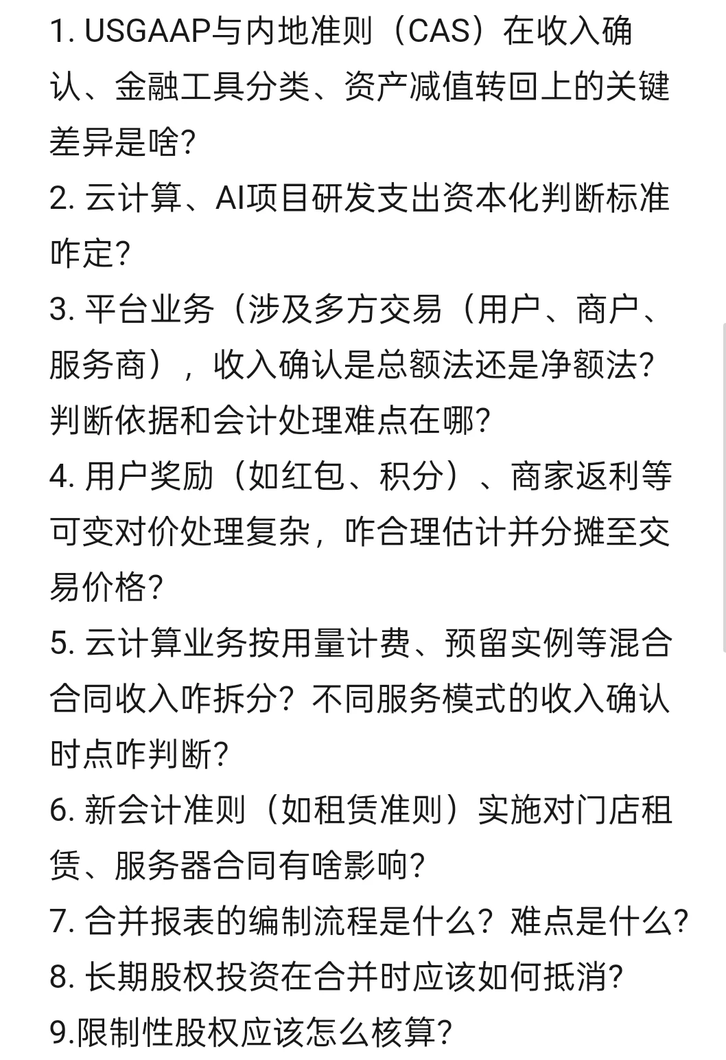 1. USGAAP与内地准则(CAS)在收入确认、金融工具分类、资产减值转回上的关键差异是啥?